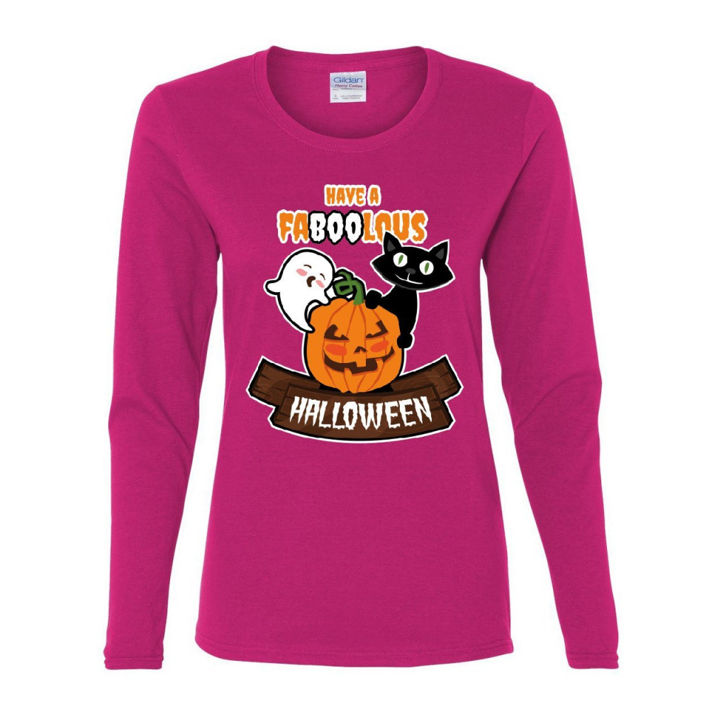 HAVE A FABOOLOUS HALLOWEEN have faboolous halloween women's long sleeve tee funny ghost pumpkin black cat hot pink