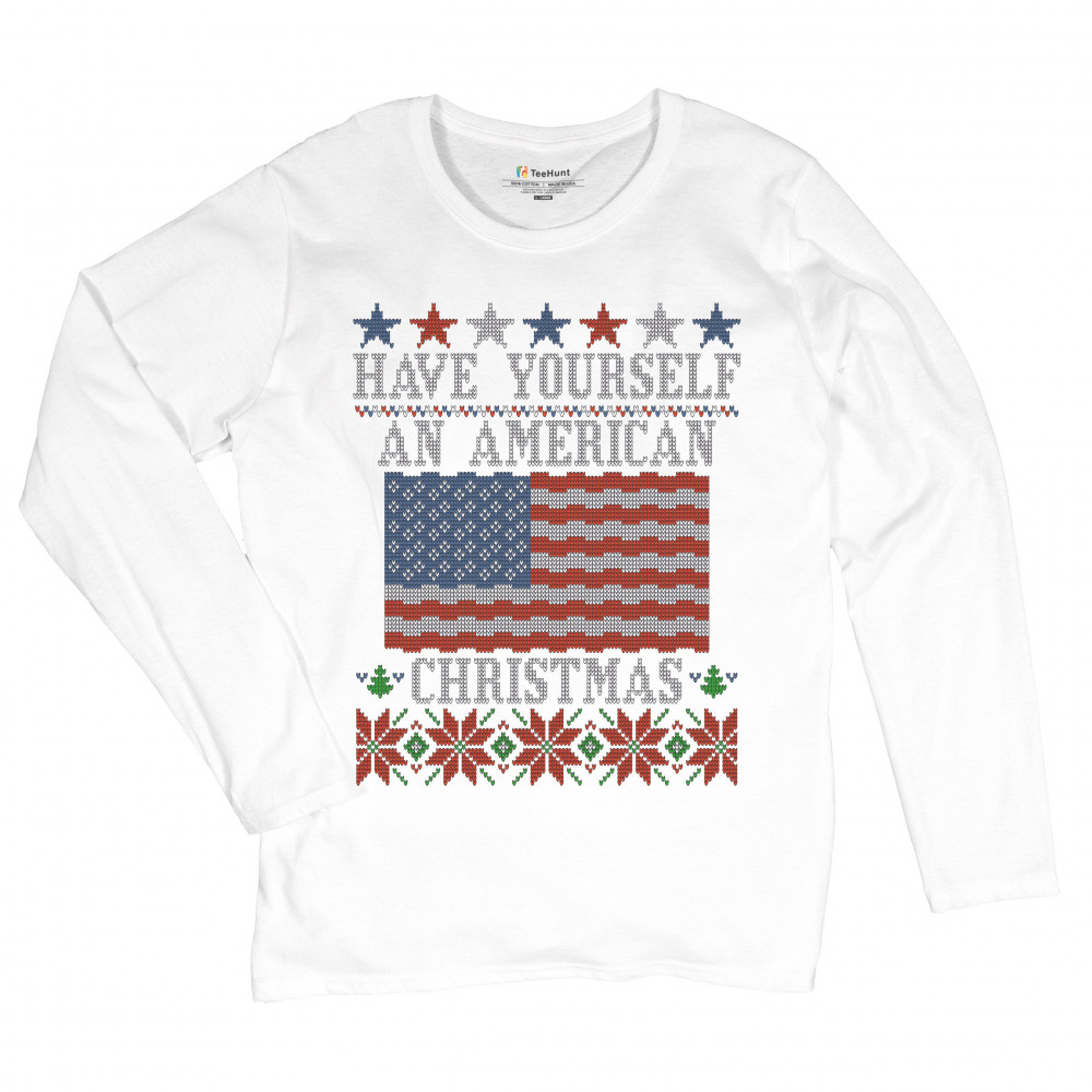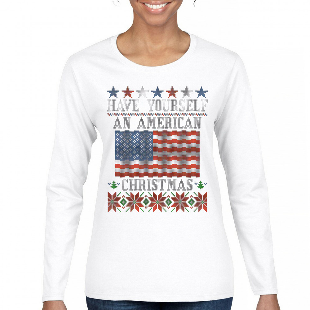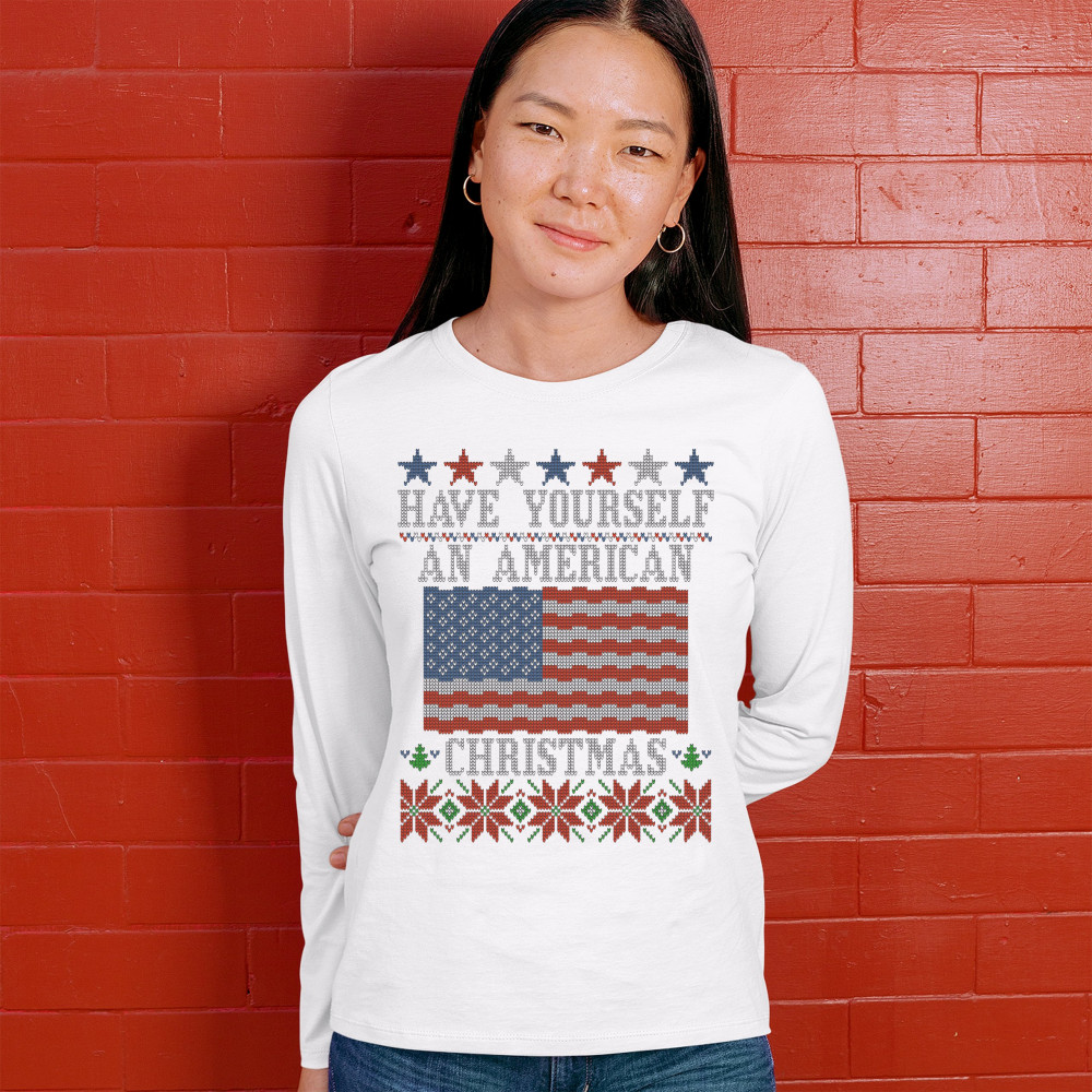 HAVE YOURSELF AN AMERICAN CHRISTMAS women's long sleeve t-shirt ugly sweater white