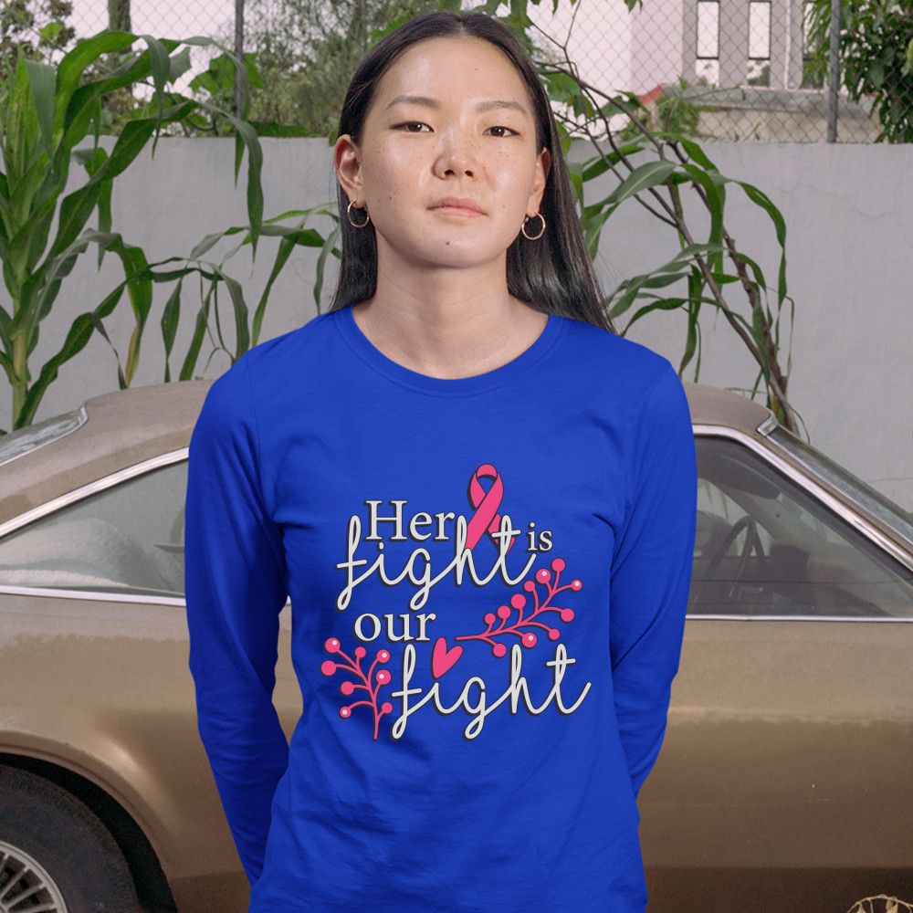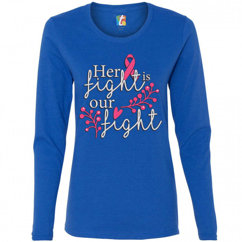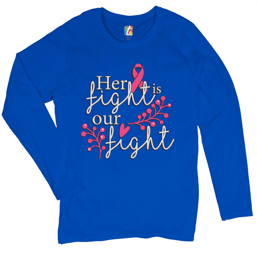HER FIGHT IS OUR FIGHT women's long sleeve t-shirt breast cancer pink ribbon royal blue