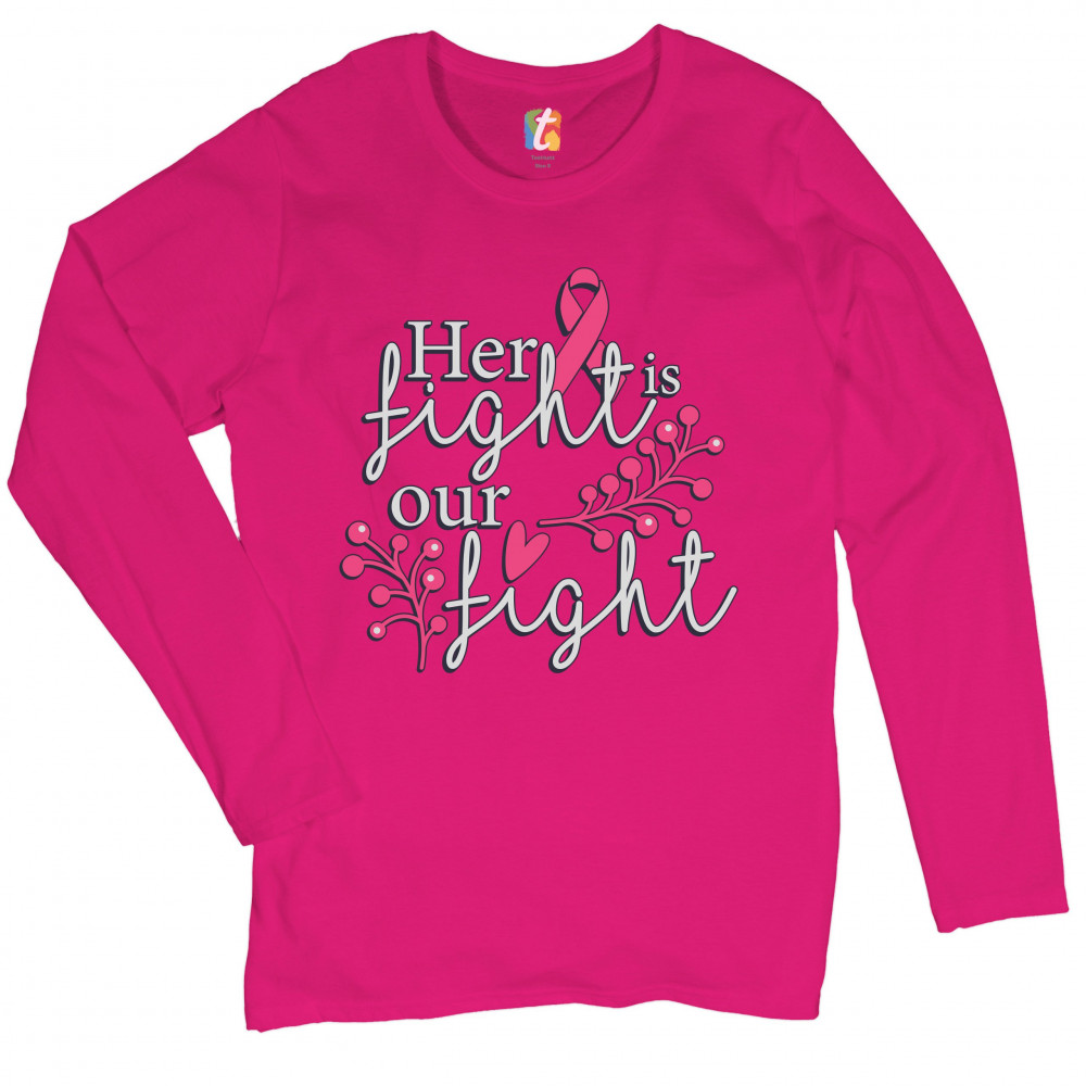 HER FIGHT IS OUR FIGHT women's long sleeve t-shirt breast cancer pink ribbon pink