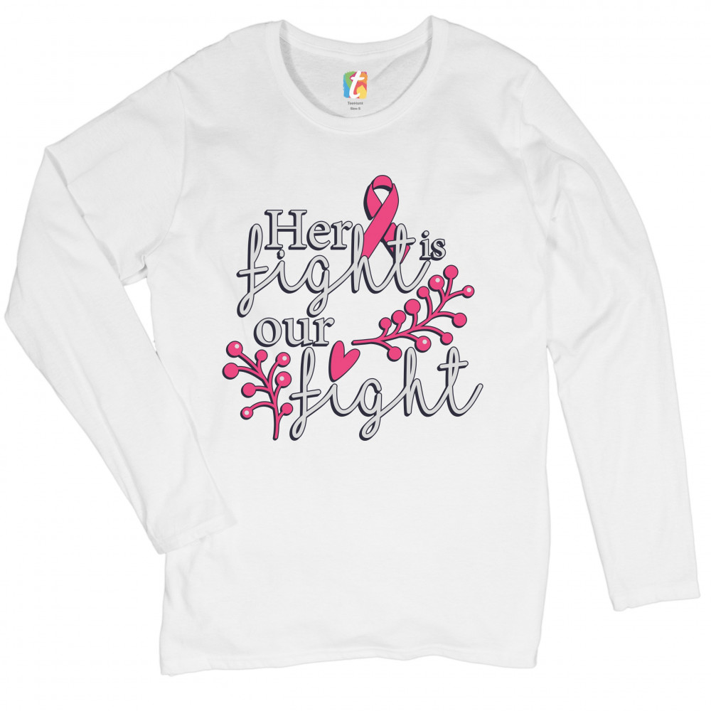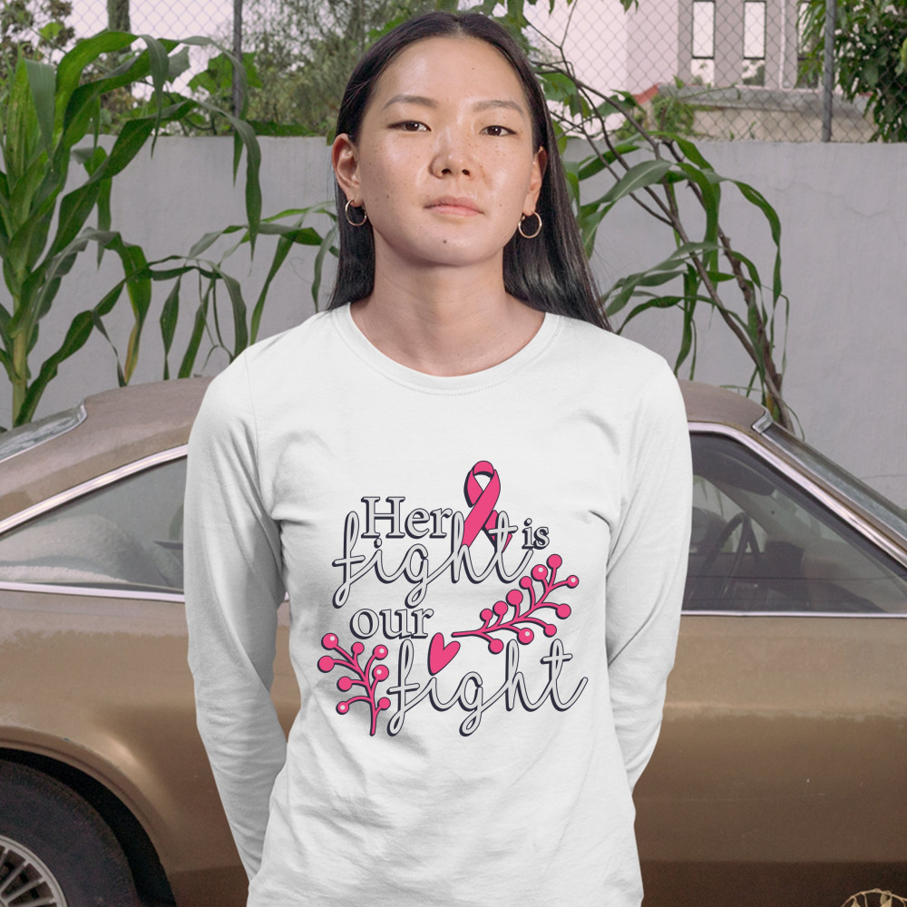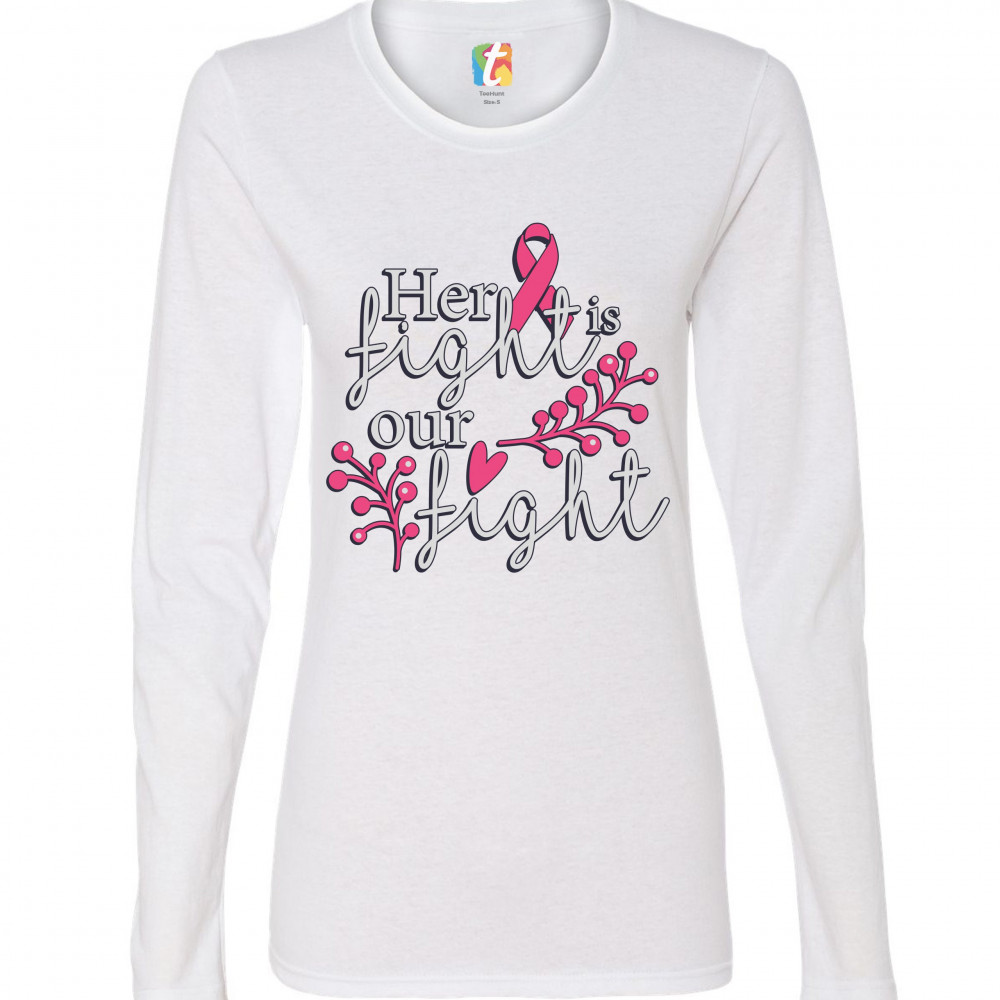 HER FIGHT IS OUR FIGHT women's long sleeve t-shirt breast cancer pink ribbon white