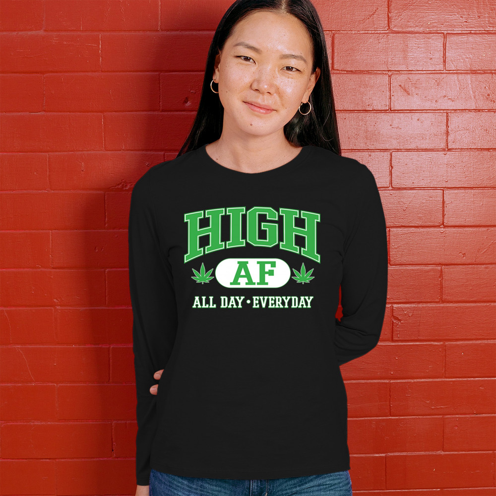HIGH AF cannabis design with bold text and 420 humor. Great for stoners, chill vibes, festivals, and everyday weed lifestyle expression.