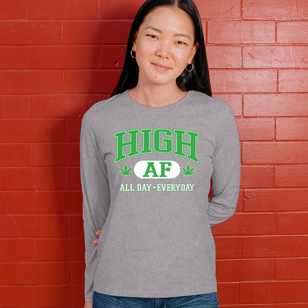 Stay lifted in style with this HIGH AF design, complete with bold letters, cannabis leaves, and the iconic “All Day · Everyday†slogan. It’s a loud, funny, and chill tribute to the 420 lifestyle—perfect for stoners, festival goers, and herb-loving free spirits who wear their vibe with pride.