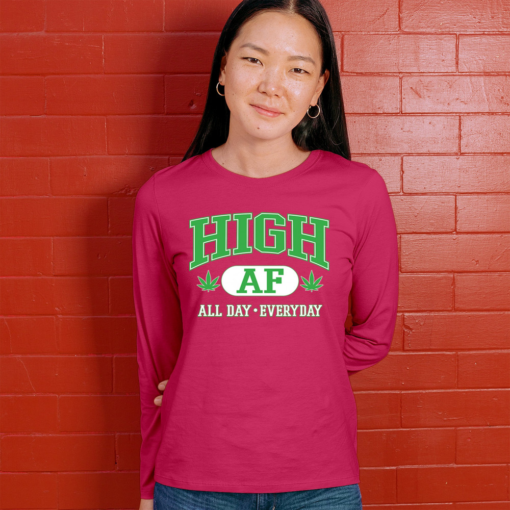 Stay lifted in style with this HIGH AF design, complete with bold letters, cannabis leaves, and the iconic “All Day · Everyday†slogan. It’s a loud, funny, and chill tribute to the 420 lifestyle—perfect for stoners, festival goers, and herb-loving free spirits who wear their vibe with pride.
