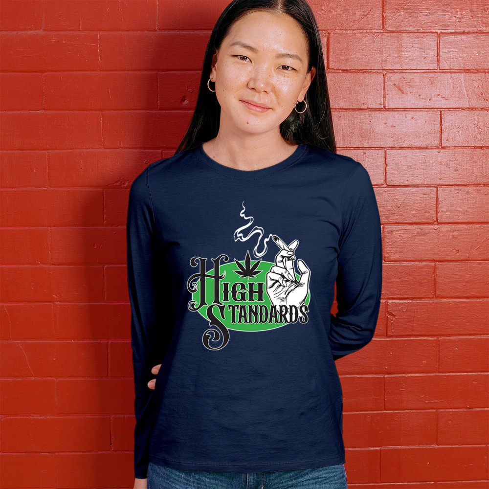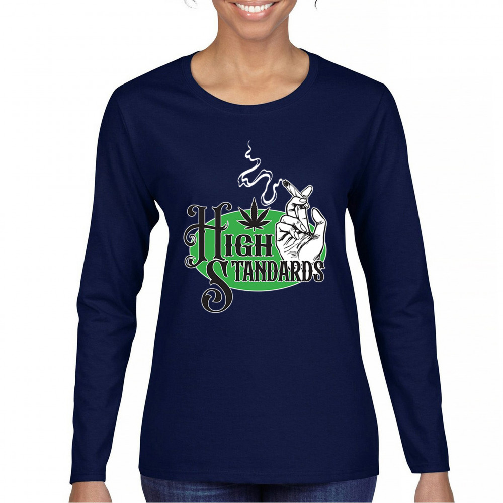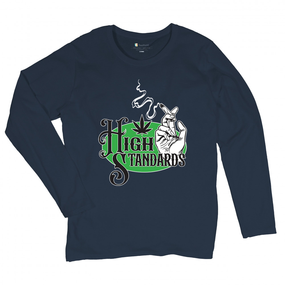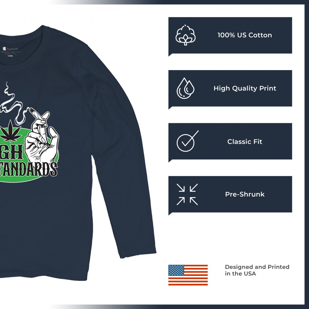 High Standards weed design with blunt humor and stoner pride. Features joint, cannabis leaf, pothead attitude, and classy chillout vibes.