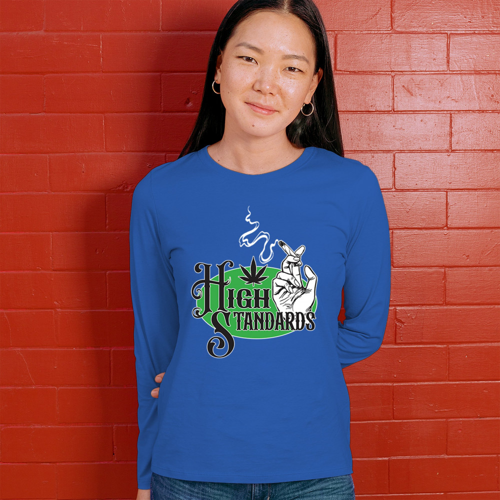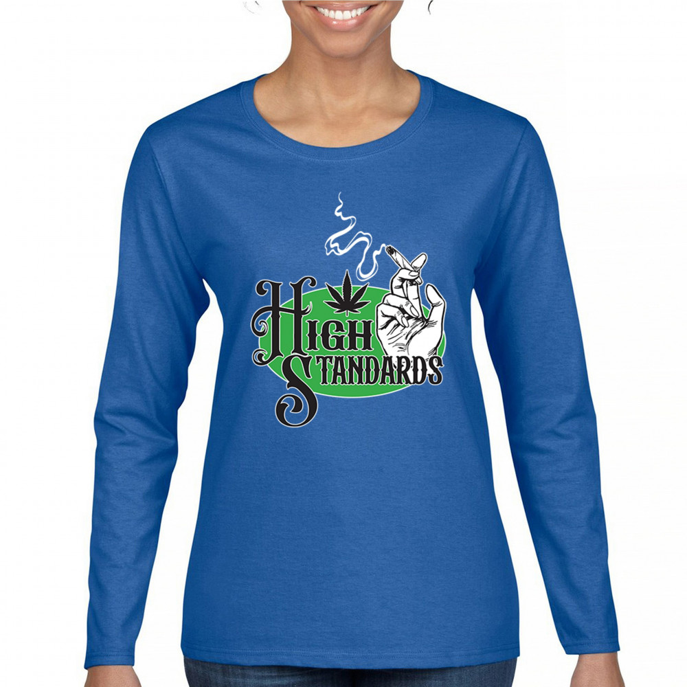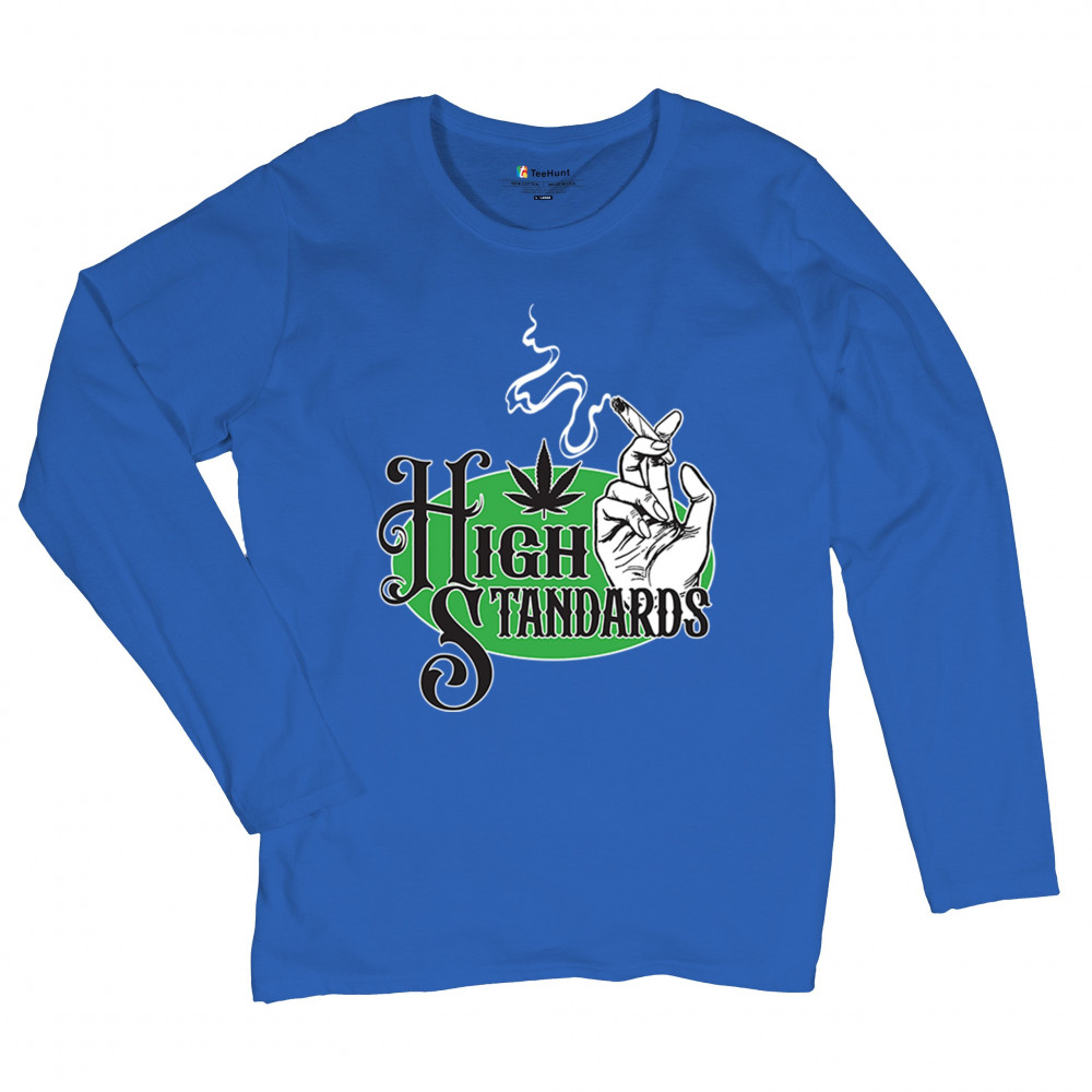 High Standards weed design with blunt humor and stoner pride. Features joint, cannabis leaf, pothead attitude, and classy chillout vibes.