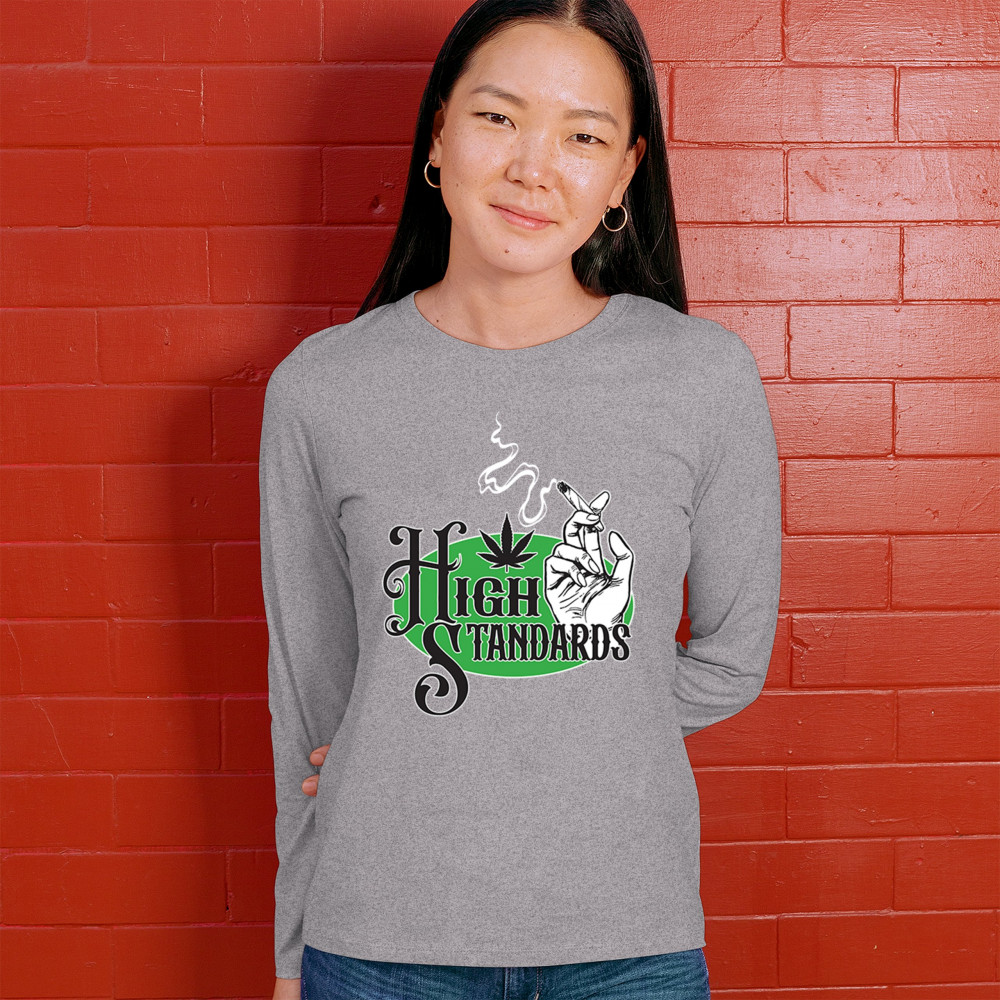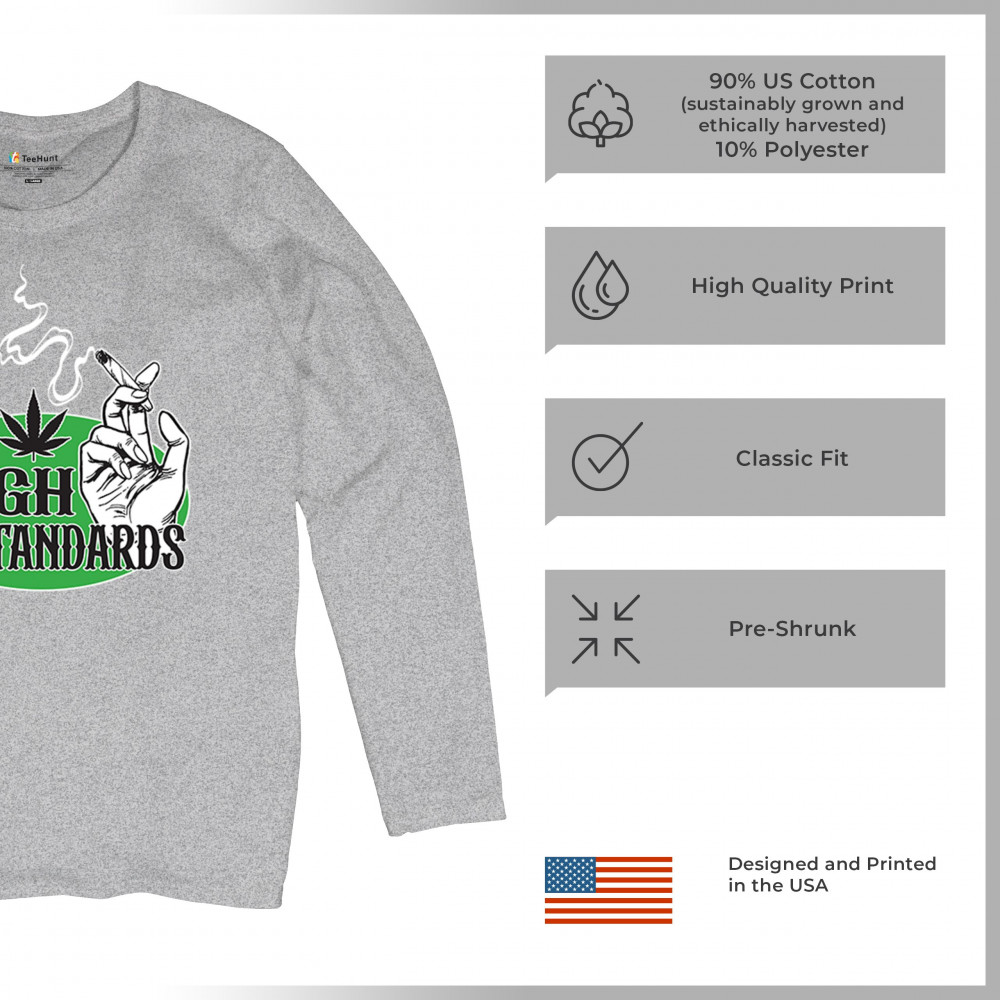 High Standards weed design with blunt humor and stoner pride. Features joint, cannabis leaf, pothead attitude, and classy chillout vibes.