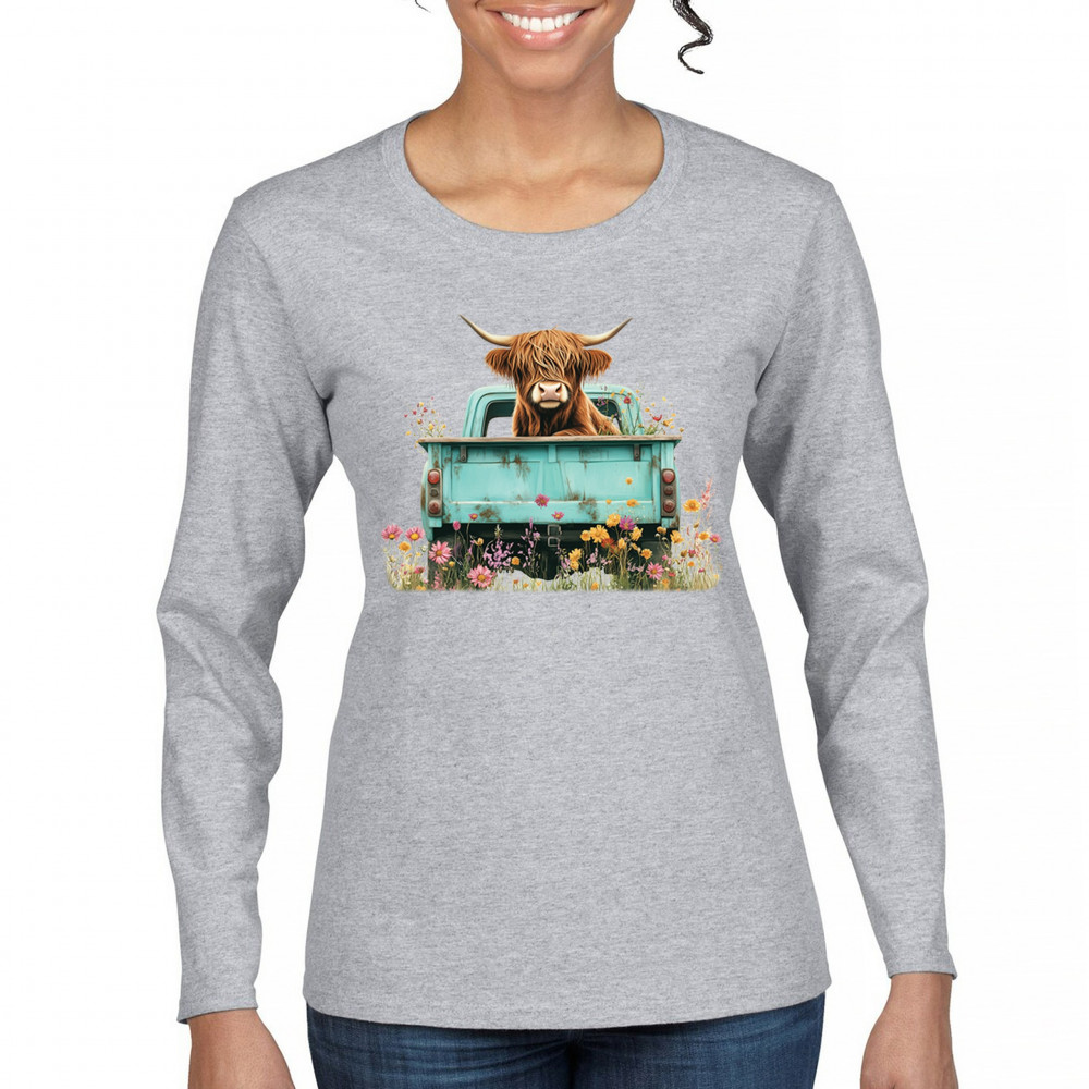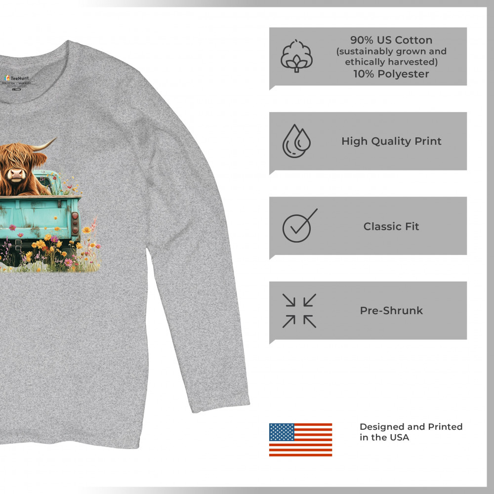 Celebrate rustic charm with this Highland Cow truck design, combining farmhouse floral truck art, boho ranch vibes, and country farmhouse shirt appeal. Perfect for cow lovers, barn style enthusiasts, and small town rural living. A vintage truck cow design that’s both cozy and stylish.