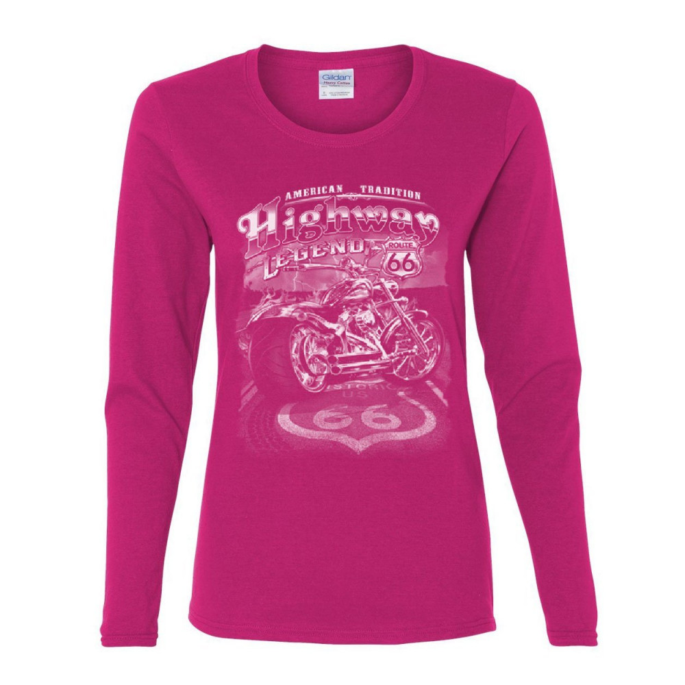 HIGHWAY LEGEND ROUTE 66 women's long sleeve tee biker american tradition chopper pink