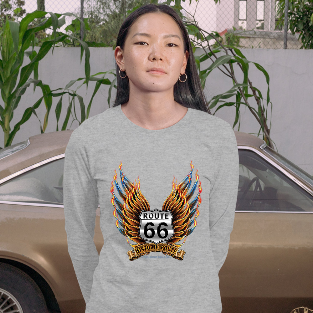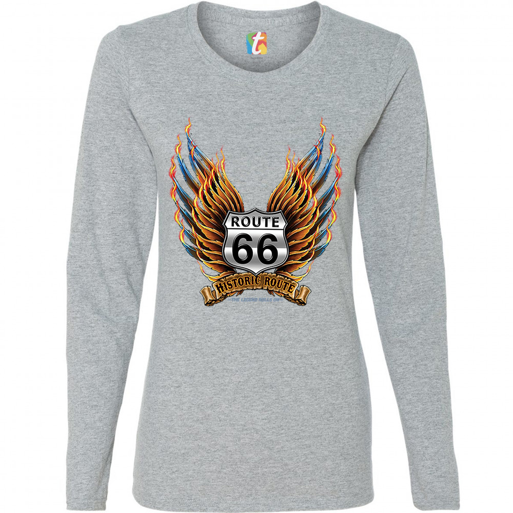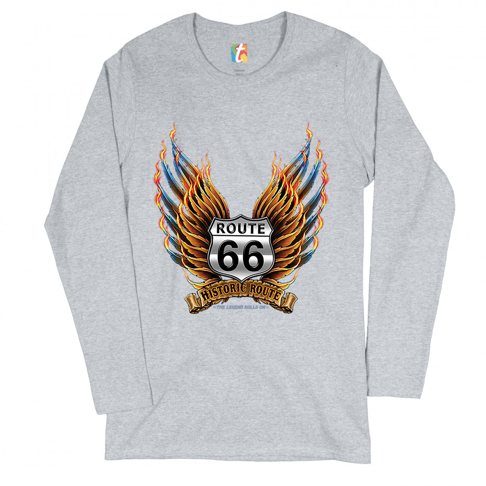 HISTORIC ROUTE 66 women's long sleeve t-shirt the legend rolls on mother road gray