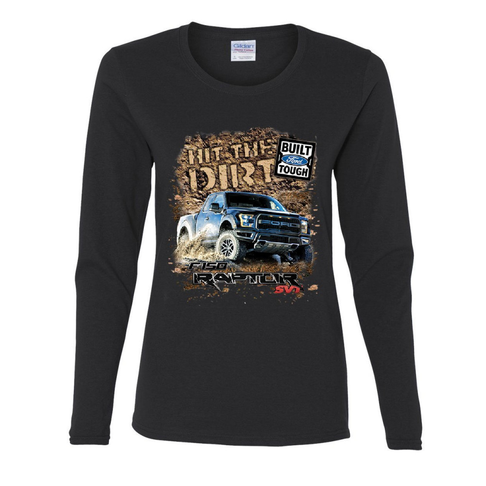 HIT THE DIRT built ford tough women's long sleeve tee f-150 raptor pickup truck black