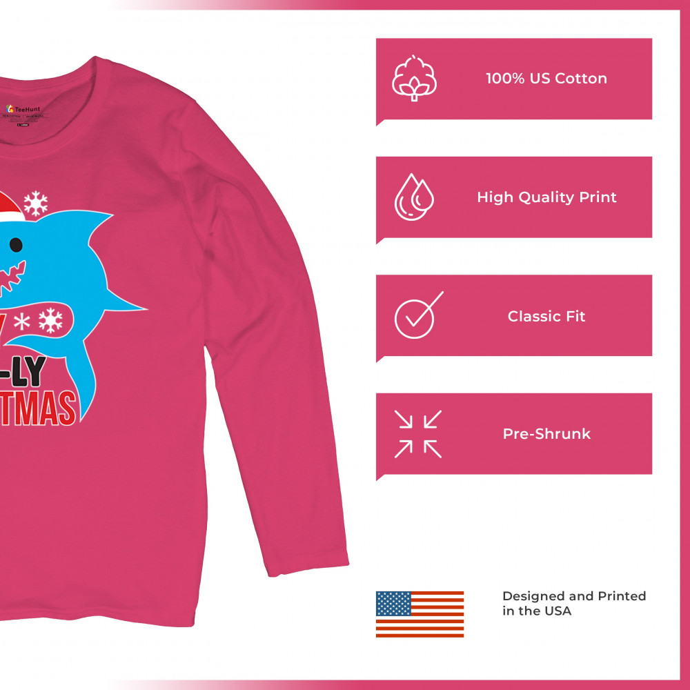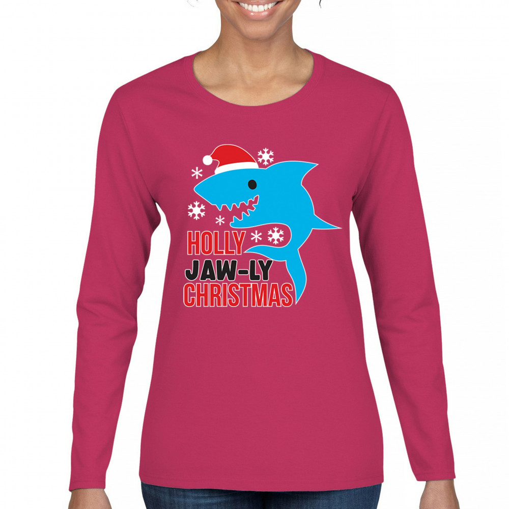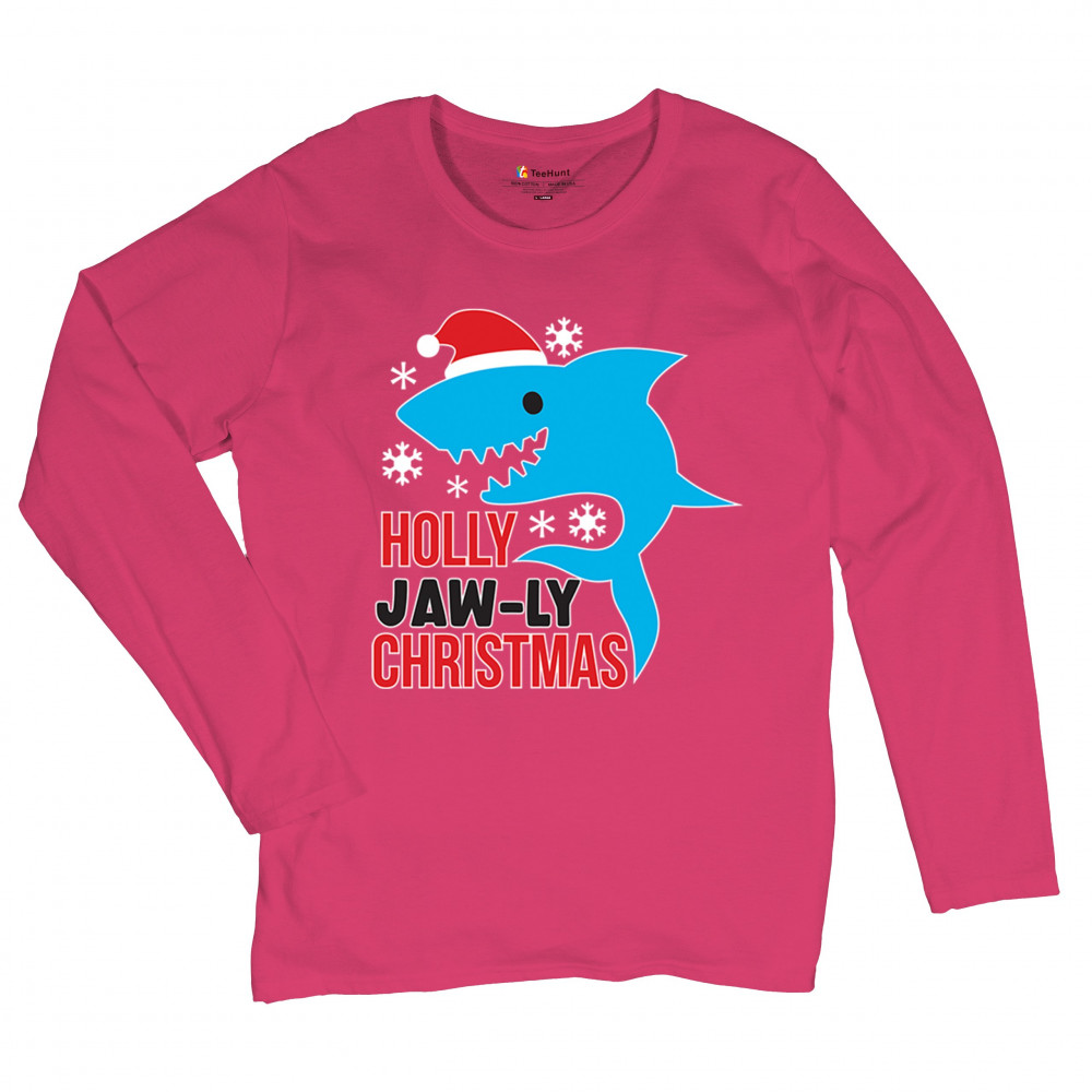 A fun Holly Jaw-ly Christmas design featuring a cheerful shark in a Santa hat with bright snowflake accents. Ideal for beach lovers, ocean fans, pun humor enthusiasts, Christmas parties, festive gatherings, white elephant events, and lighthearted winter celebrations. Brings a playful coastal vibe to holiday season outfits and gifts.