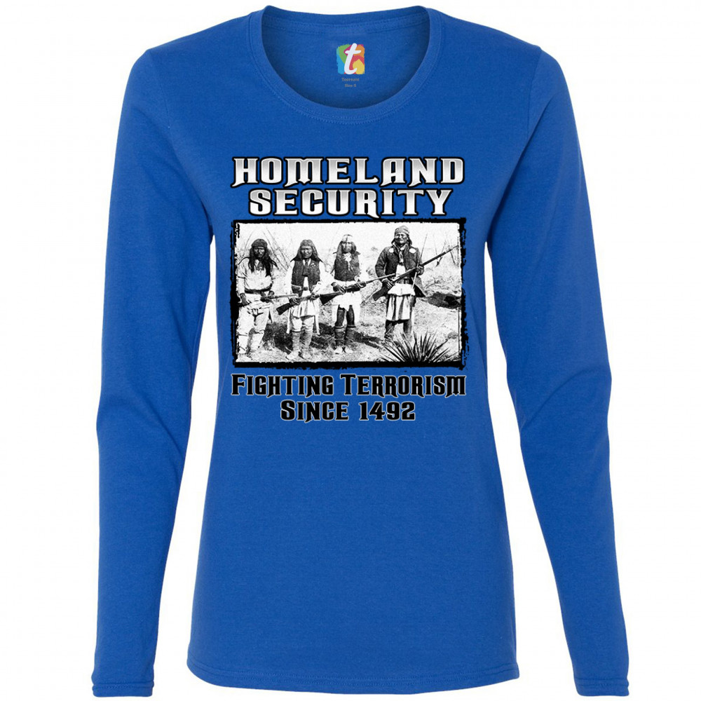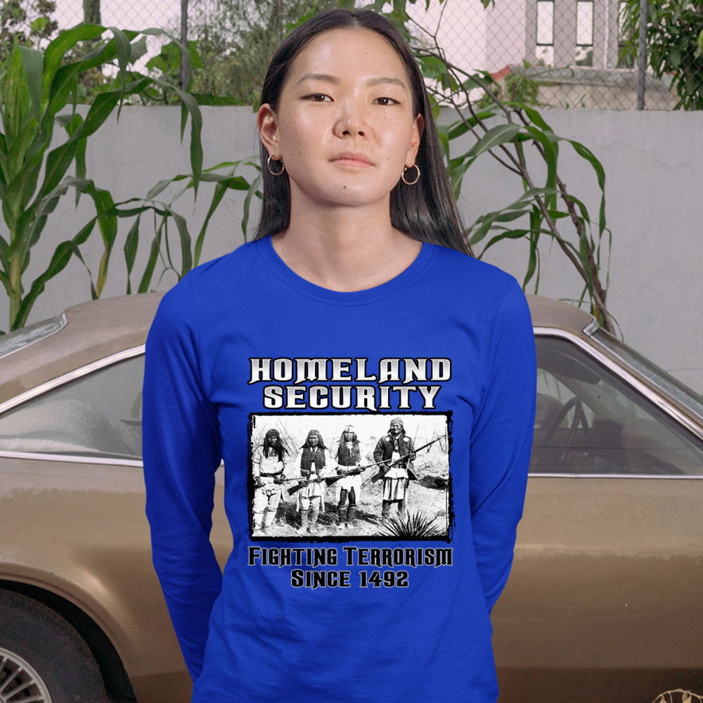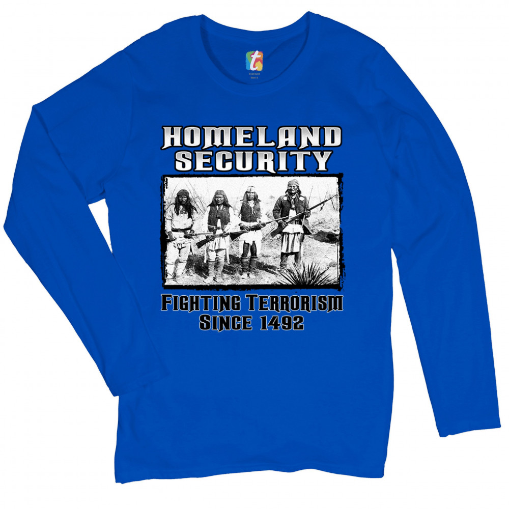 HOMELAND SECURITY women's long sleeve t-shirt native american indigenous tribal royal blue