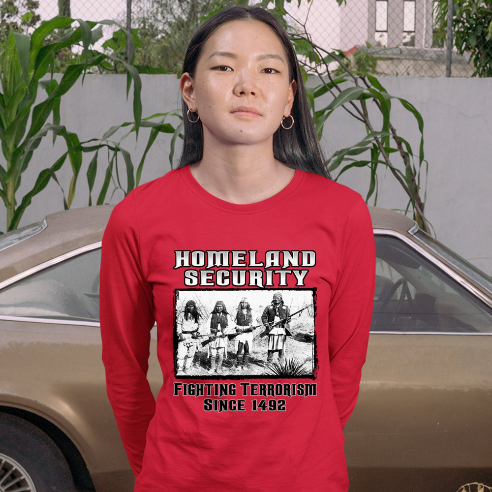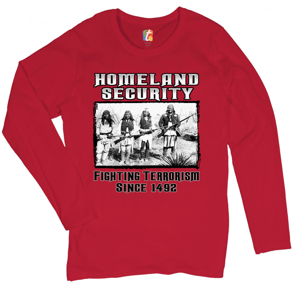 HOMELAND SECURITY women's long sleeve t-shirt native american indigenous tribal red