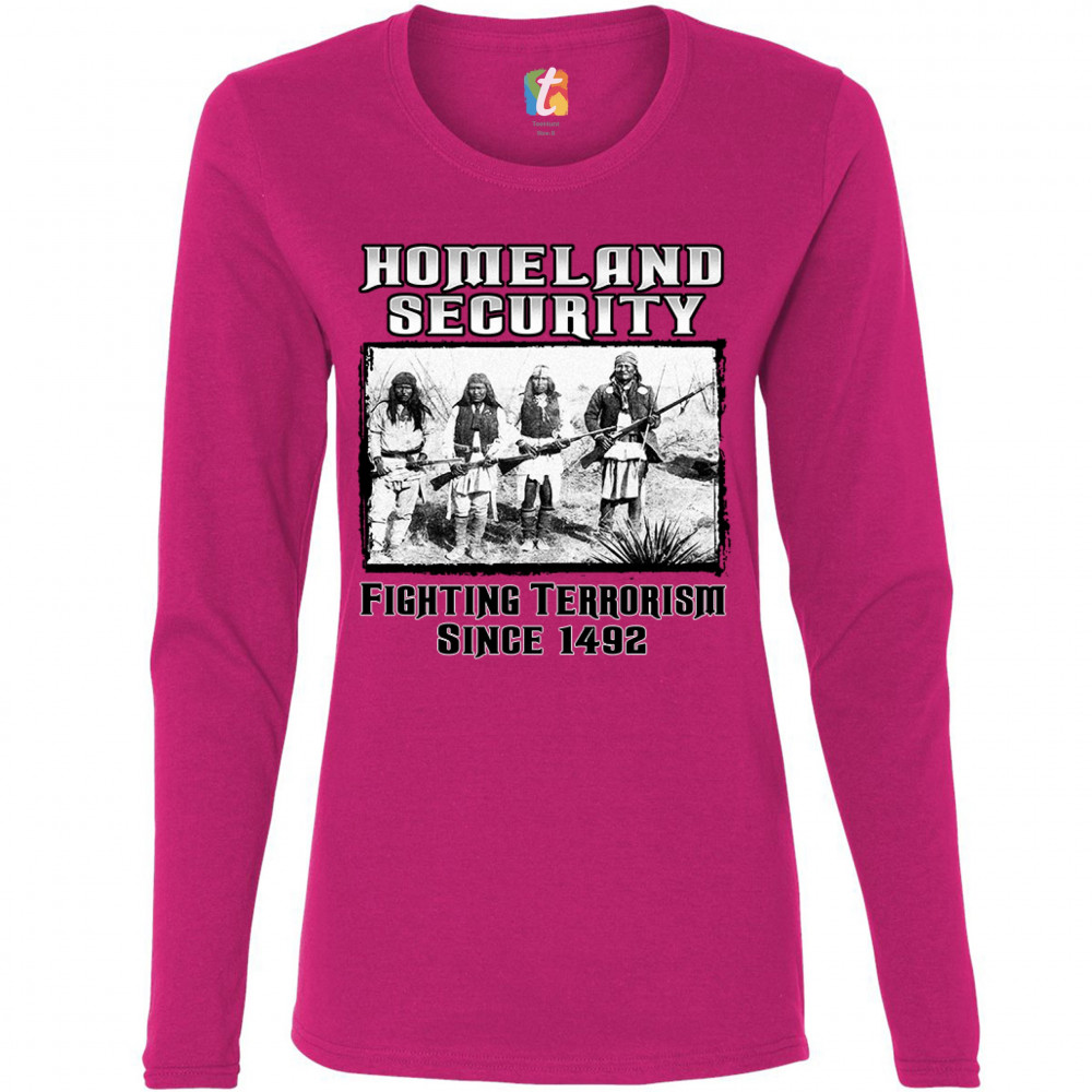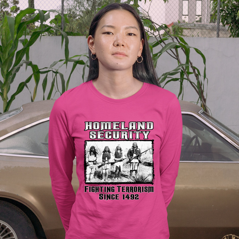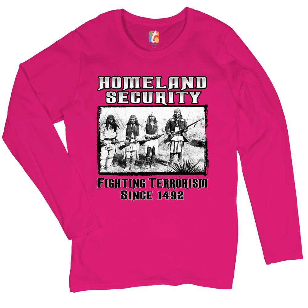 HOMELAND SECURITY women's long sleeve t-shirt native american indigenous tribal pink