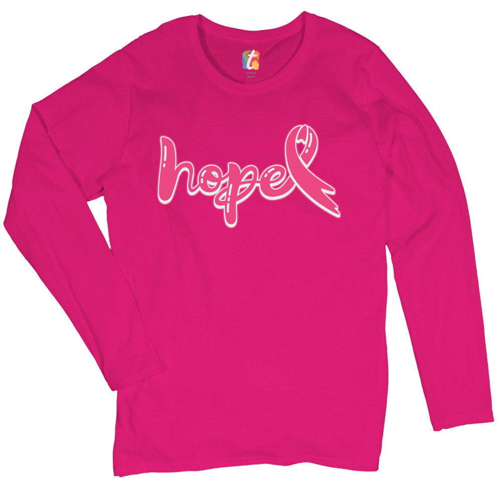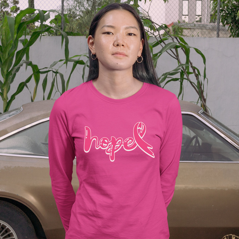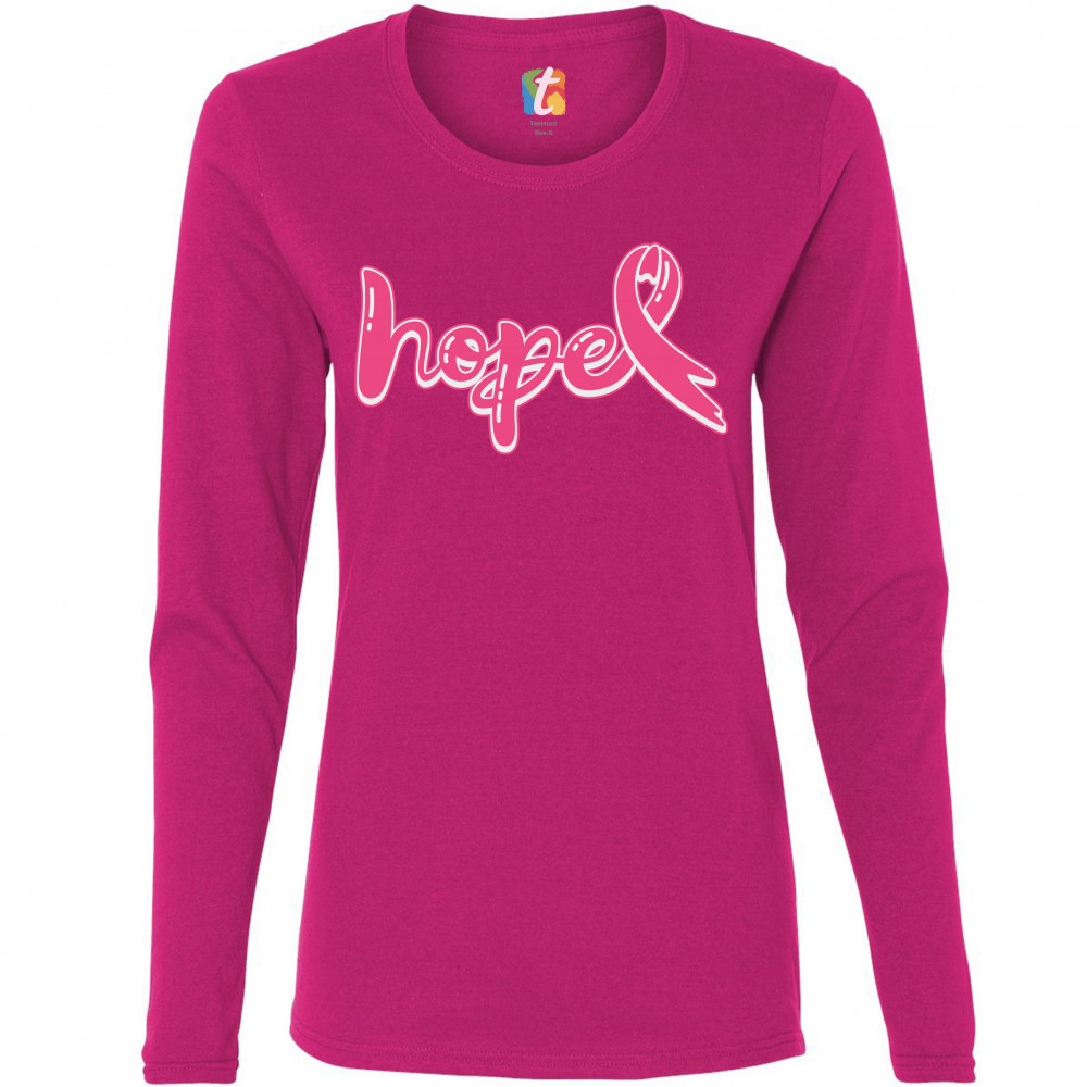 HOPE PINK RIBBON women's long sleeve t-shirt breast cancer awareness month pink