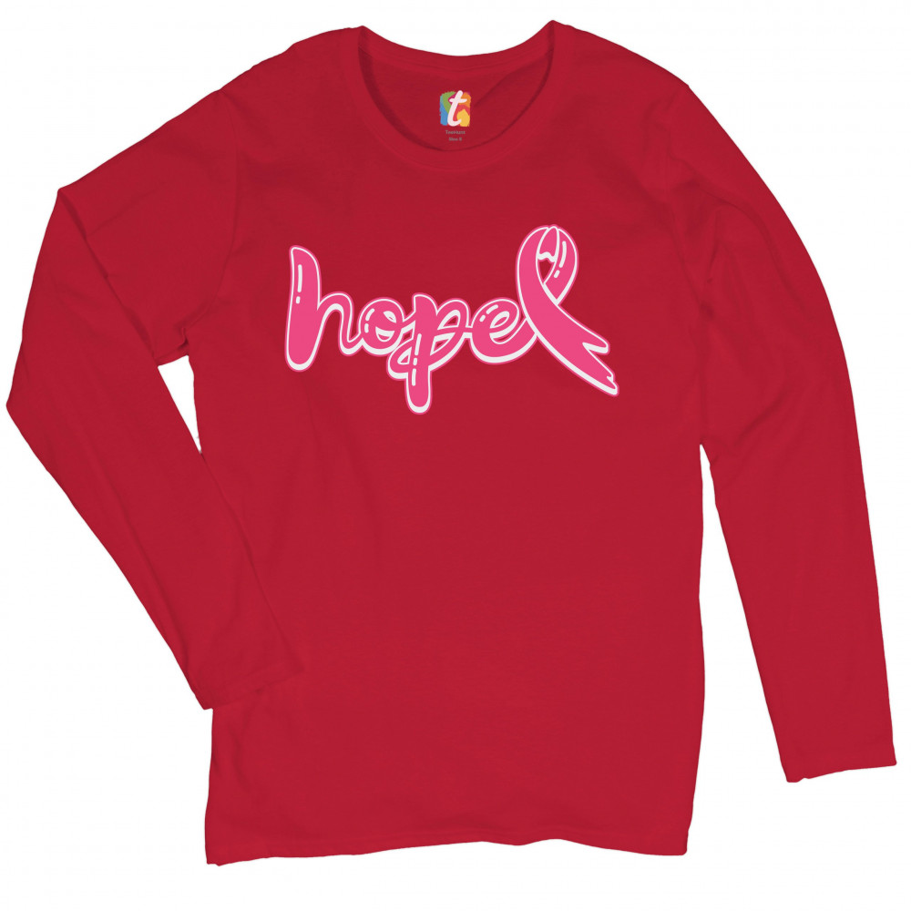 HOPE PINK RIBBON women's long sleeve t-shirt breast cancer awareness month red