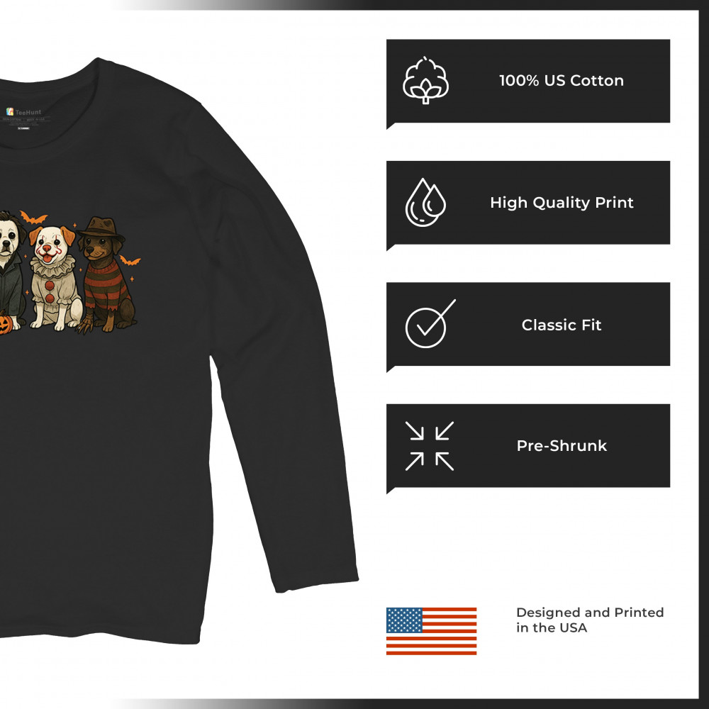 Celebrate Halloween with the Horror Dogs design featuring pups in creepy costumes inspired by spooky icons. A perfect pick for October 31 haunted house visits, autumn nights, or parties full of Halloween vibes. Whether you love dogs, witches, or pumpkin head fun, this festive design makes a playful addition to the spooky season.