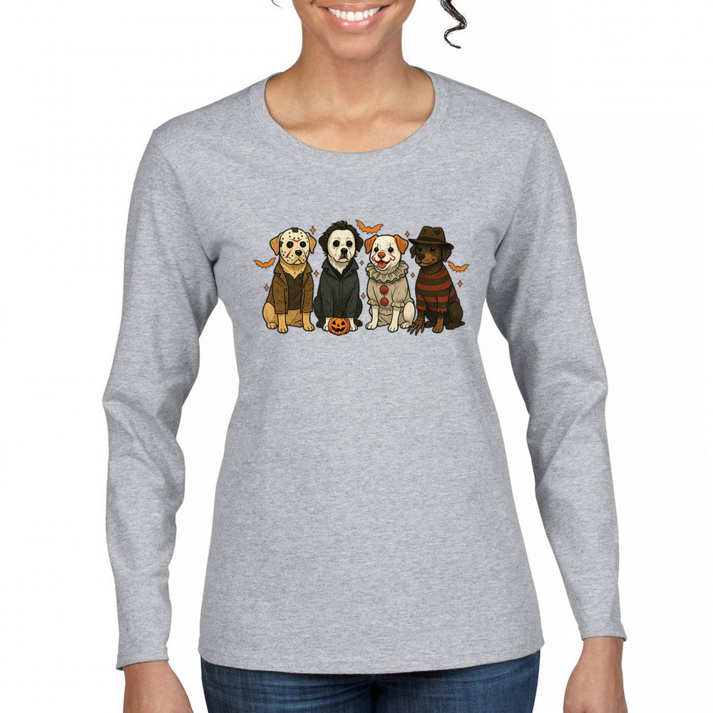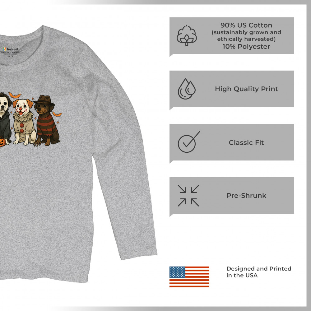 Celebrate Halloween with the Horror Dogs design featuring pups in creepy costumes inspired by spooky icons. A perfect pick for October 31 haunted house visits, autumn nights, or parties full of Halloween vibes. Whether you love dogs, witches, or pumpkin head fun, this festive design makes a playful addition to the spooky season.