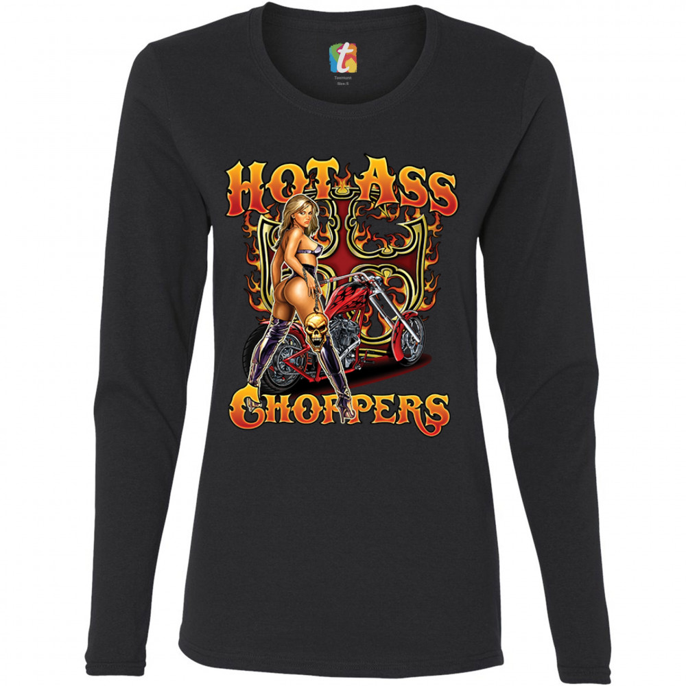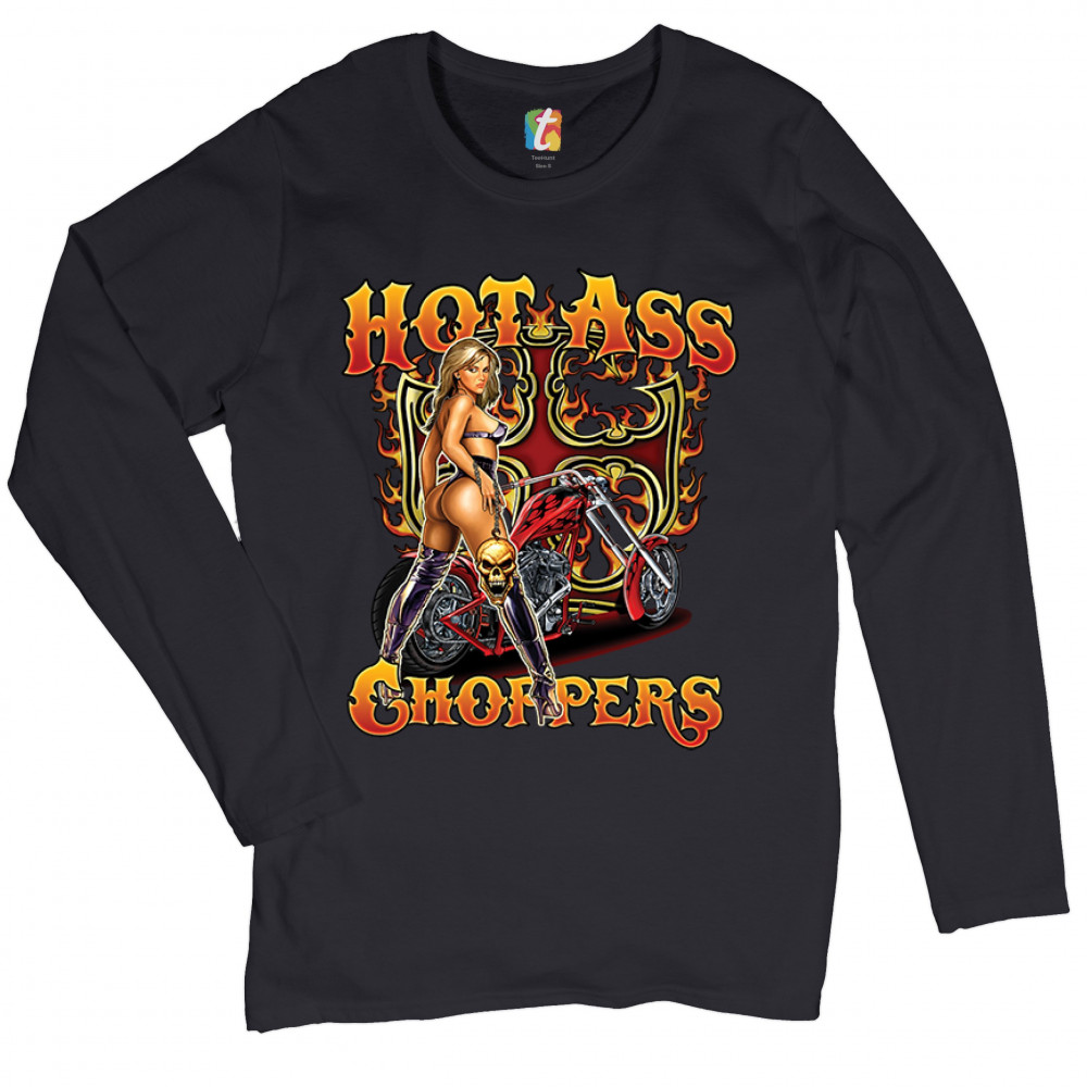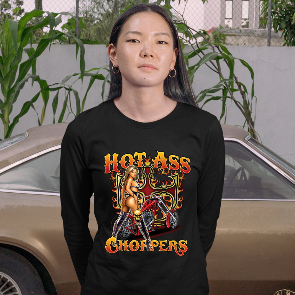 HOT ASS CHOPPERS women's long sleeve t-shirt born to be wild route 66 hot chick black