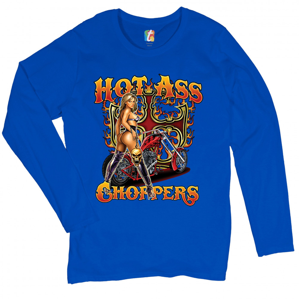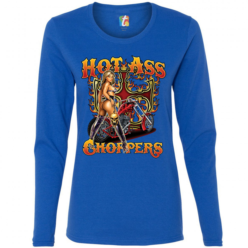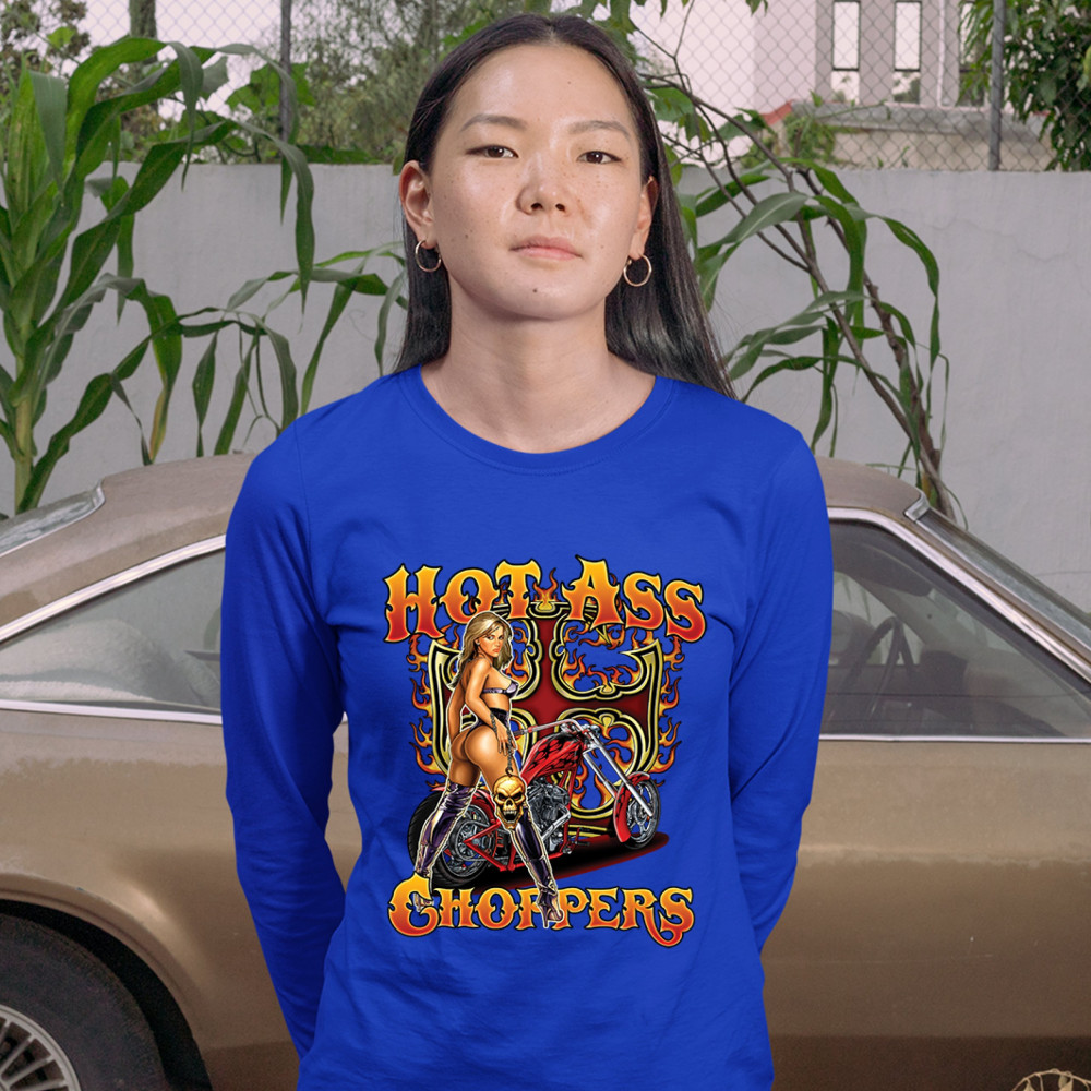 HOT ASS CHOPPERS women's long sleeve t-shirt born to be wild route 66 hot chick royal blue