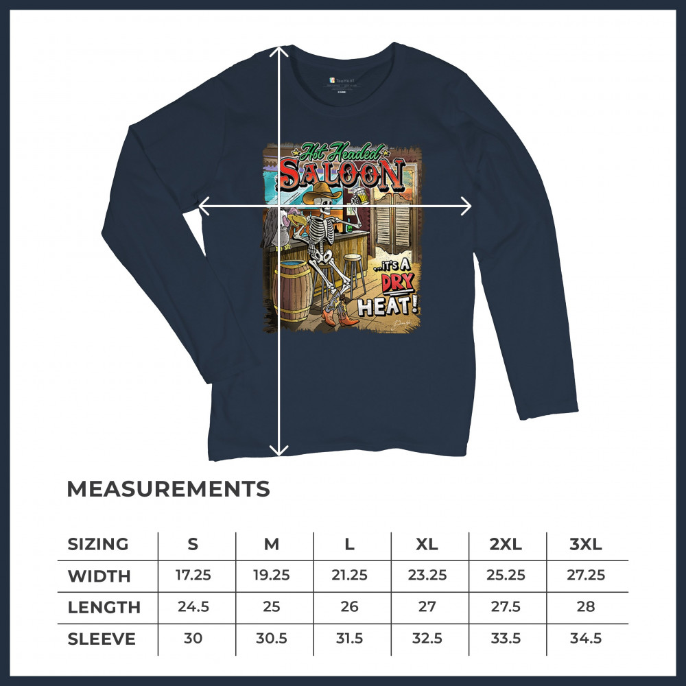 Raise a glass to style with our 'Hot Headed Saloon' t-shirt! Featuring a skeletal mixologist in a desert tavern, this tee blends humor with high-stakes western drama. Crafted for those who take their style like their whiskey – strong and full of character – it's more than just apparel; it's a wearable tale of the wild, wild west. Add this conversation piece to your collection and tip your hat to a bygone era with a laugh.