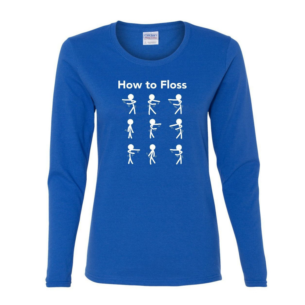 HOW TO FLOSS women's long sleeve tee new dance backpack kid tutorial funny trend royal blue