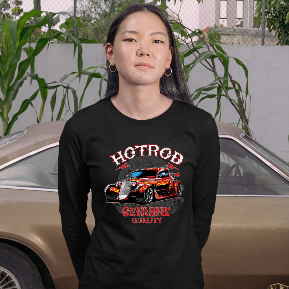 HOTROD women's long sleeve t-shirt american muscle hot rod old school racing black