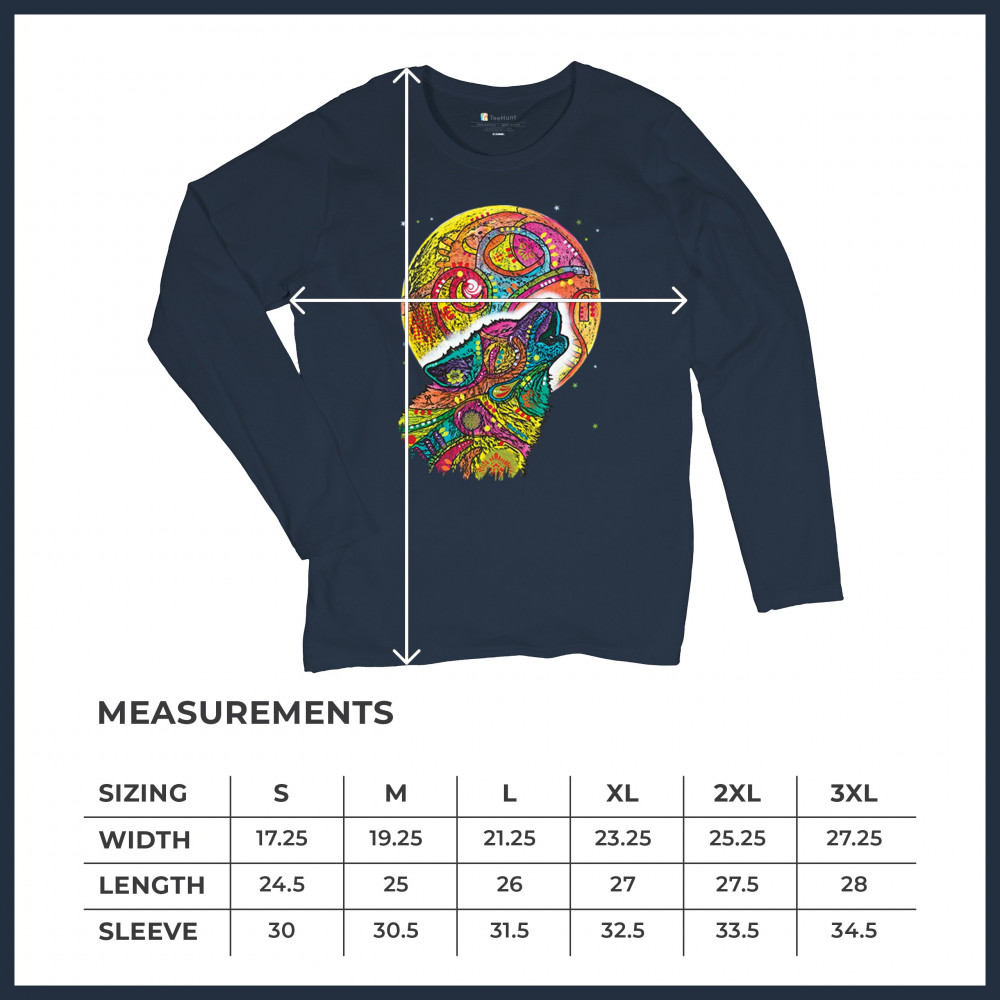 HOWLING WOLF AND MOON women's long sleeve t-shirt dean russo colorful wild life navy blue
