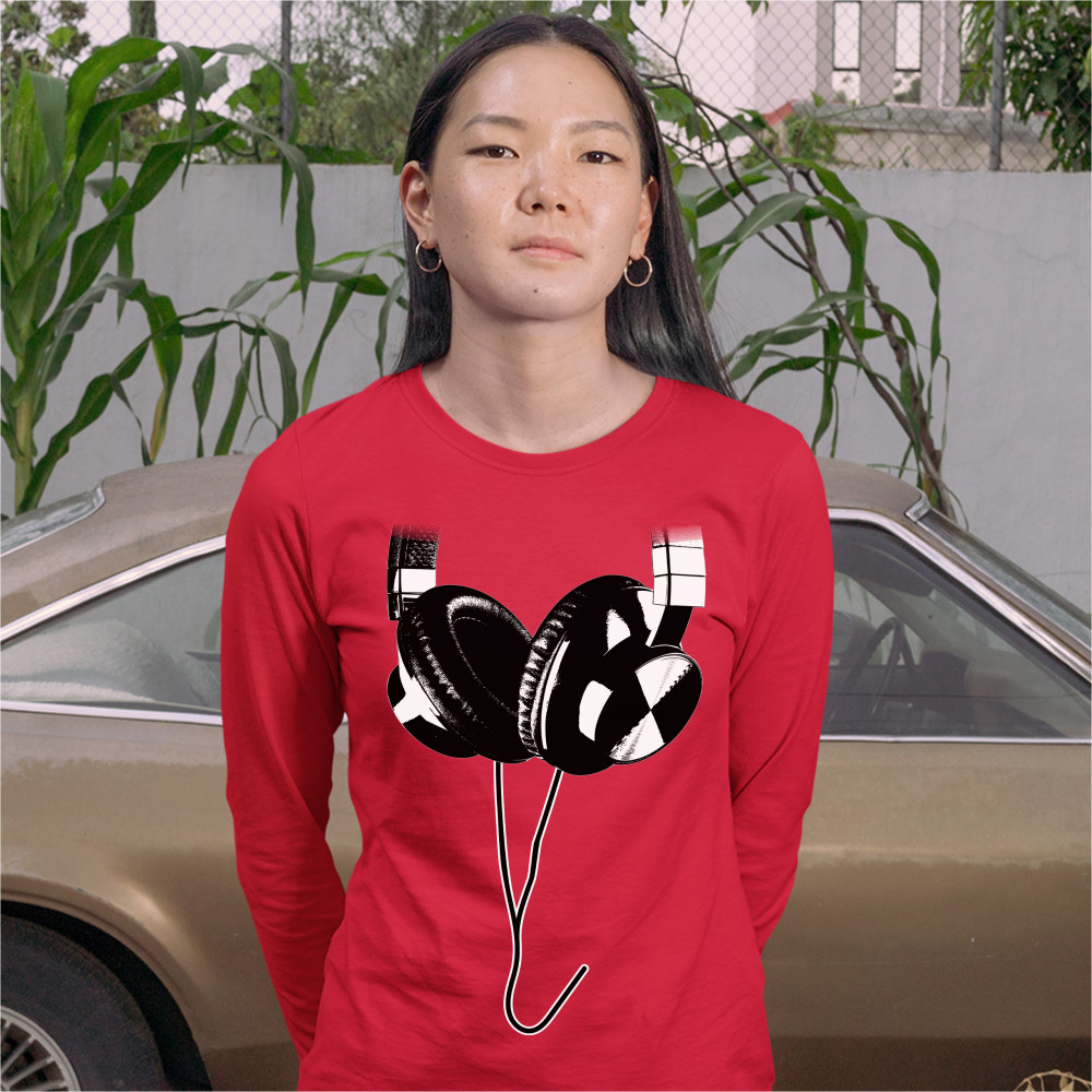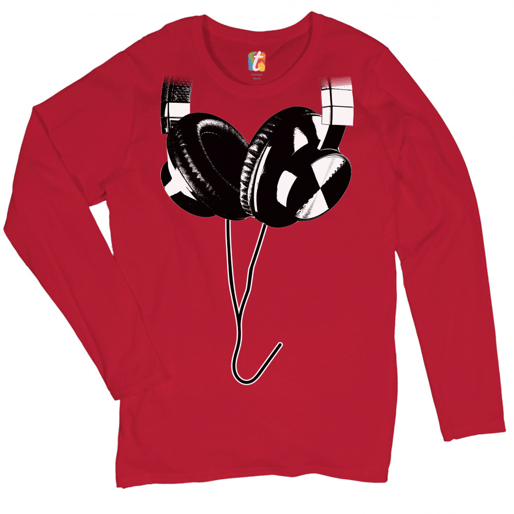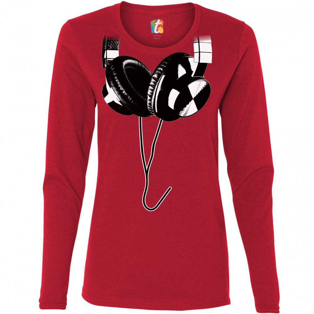 HUGE HANGING HEADPHONES women's long sleeve t-shirt dj music red