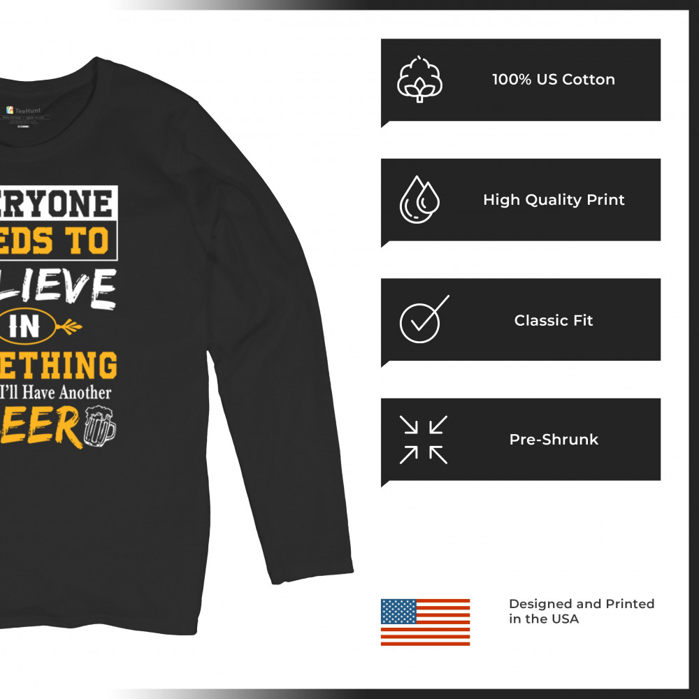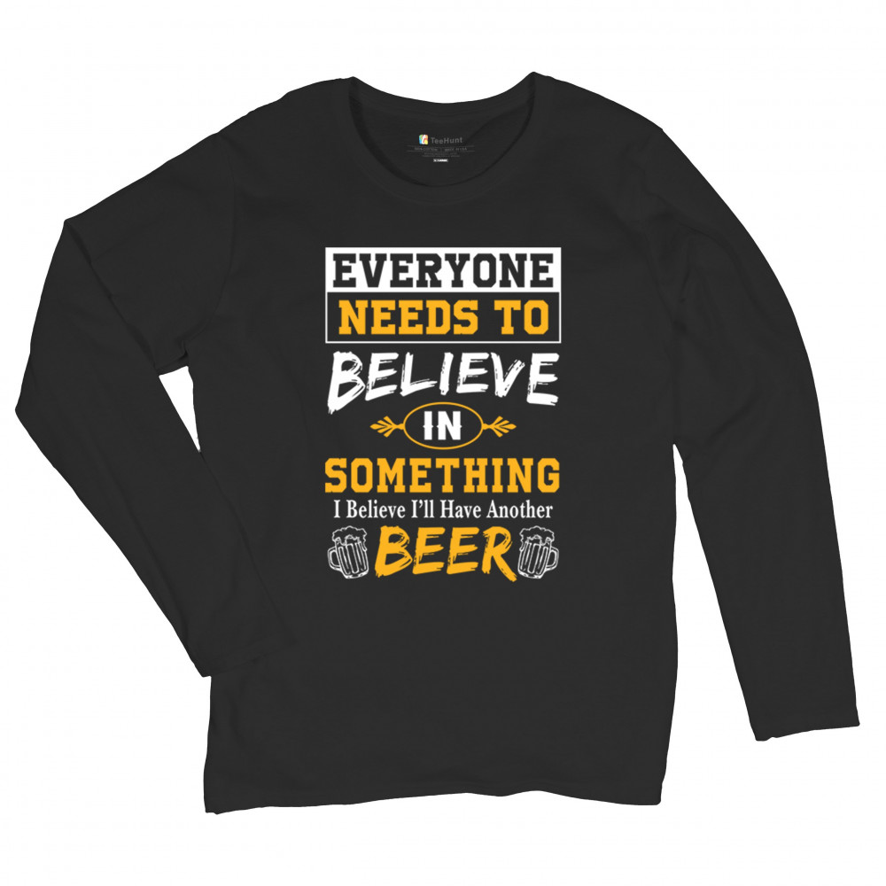 Celebrate your love for beer with the witty "Everyone Needs to Believe in Something, I Believe I'll Have Another Beer" design. Perfect for beer lovers and casual outings.