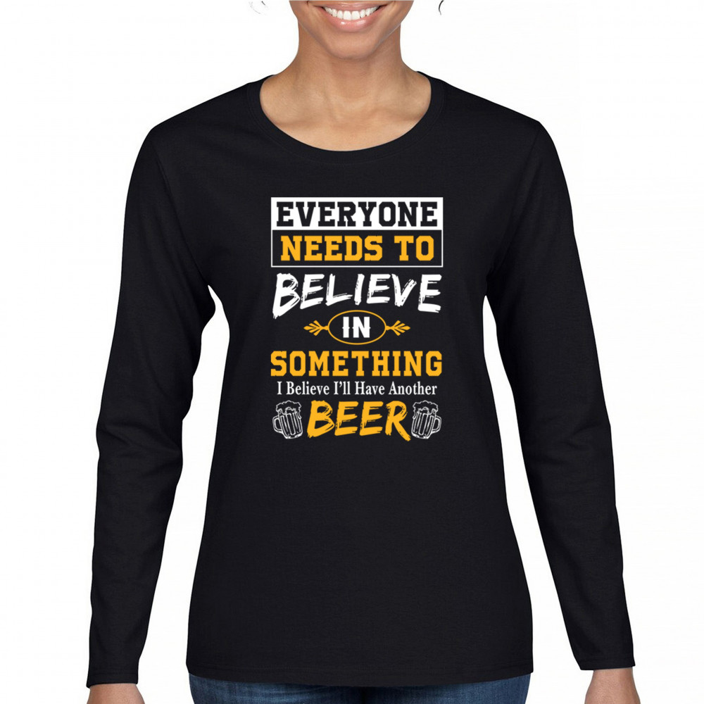 I BELIEVE I'LL HAVE ANOTHER BEER women's long sleeve t-shirt fun drinking craft black