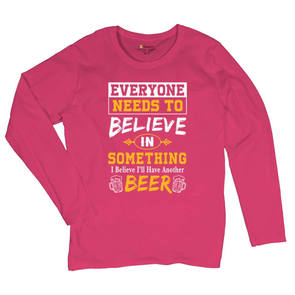 Celebrate your love for beer with the witty "Everyone Needs to Believe in Something, I Believe I'll Have Another Beer" design. Perfect for beer lovers and casual outings.