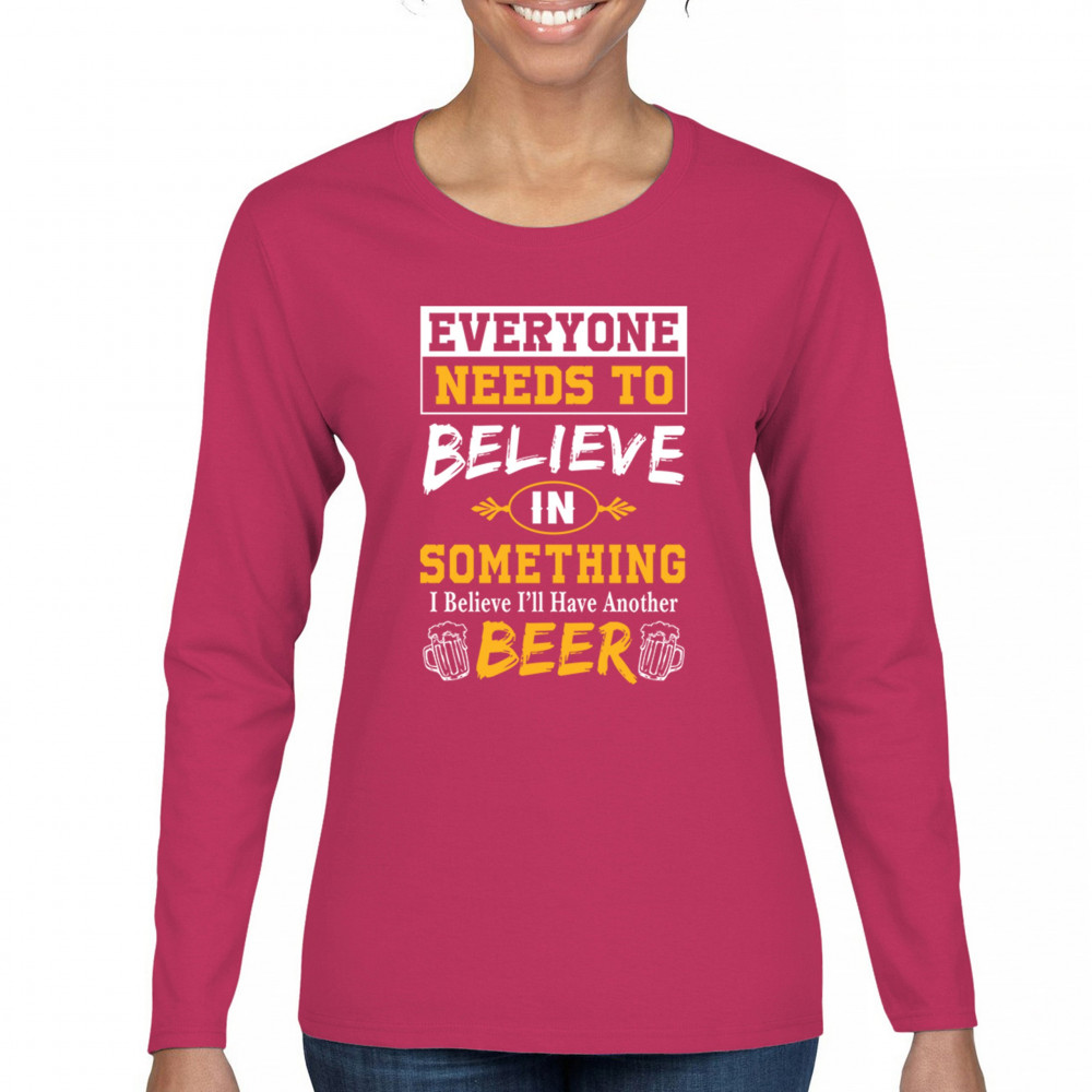 Add some humor to your wardrobe with our "Everyone Needs to Believe in Something, I Believe I'll Have Another Beer" design. Featuring a witty slogan and beer-themed graphics, this design is perfect for casual outings, beer festivals, and social gatherings. Ideal for beer lovers and anyone who enjoys a good laugh, it makes a fantastic gift for friends and family. Celebrate your love for beer and good times with this fun and playful design!