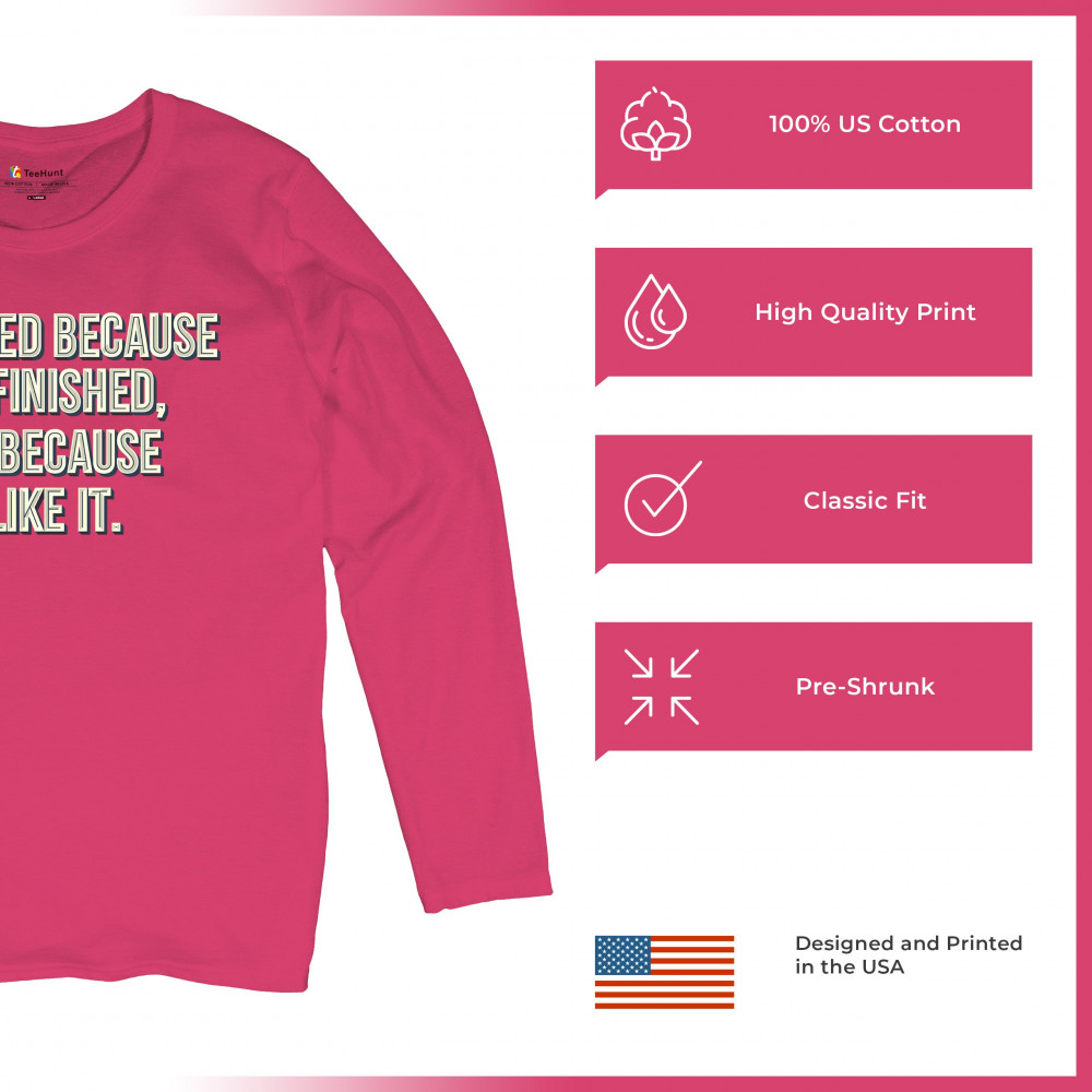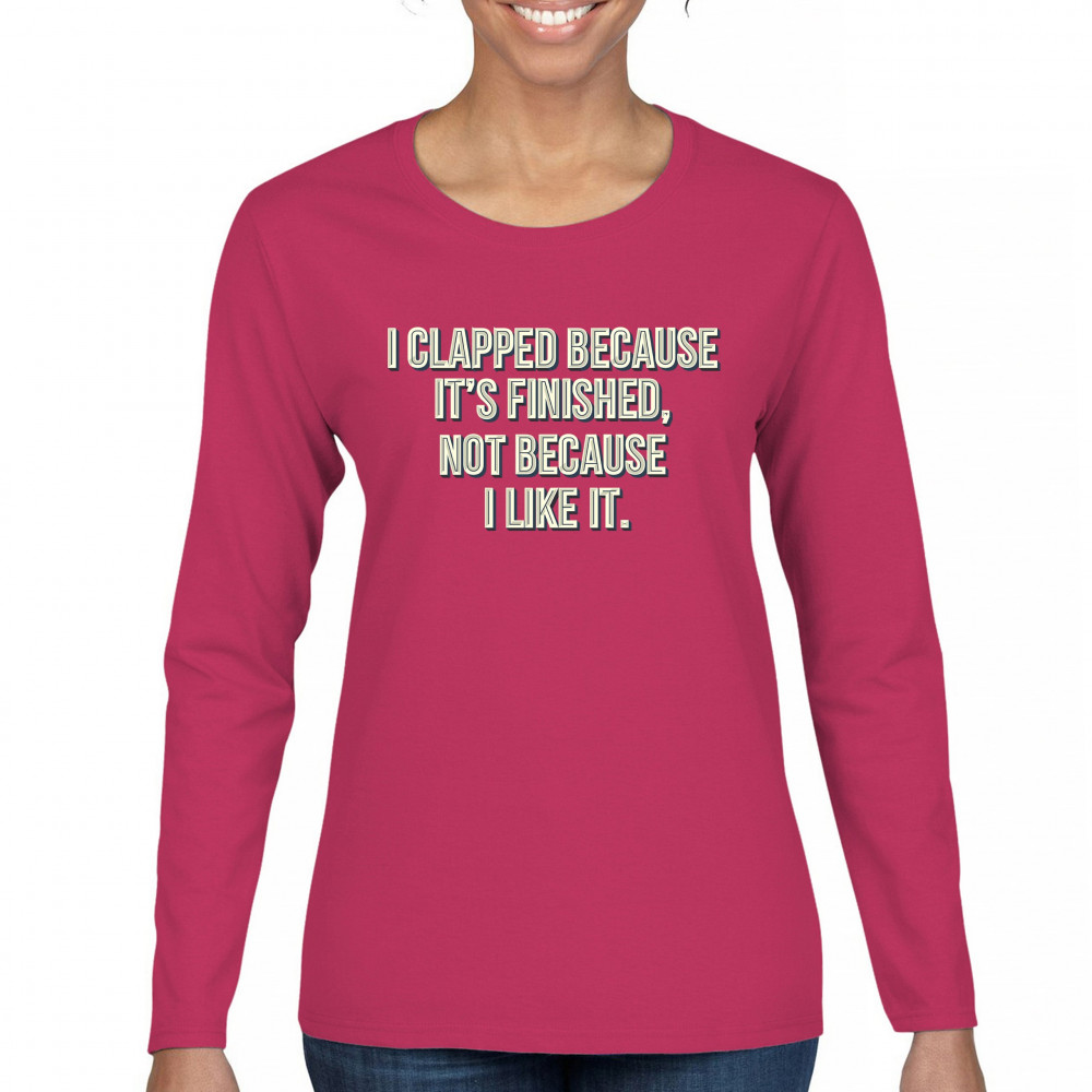 I CLAPPED BECAUSE IT'S FINISHED NOT BECAUSE I LIKE IT i clapped because it's finished sarcastic women's long sleeve t-shirt funny pink