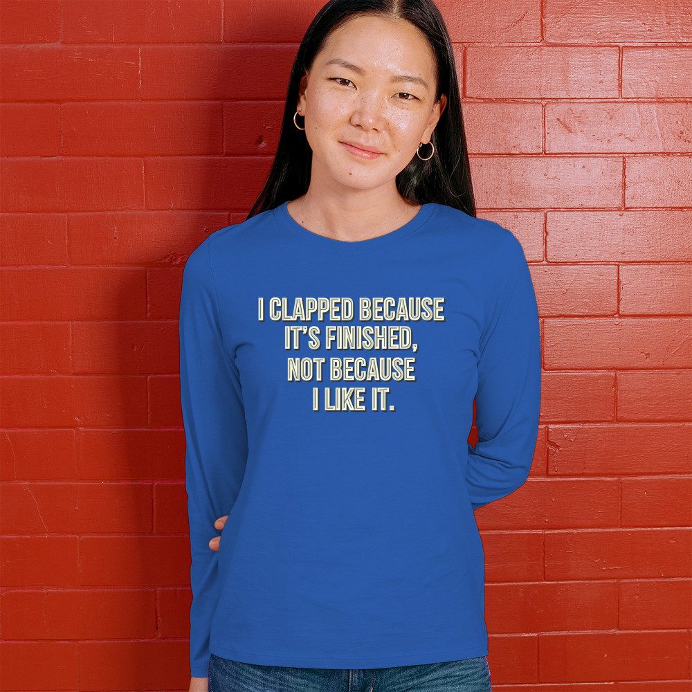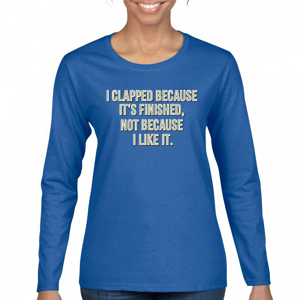 I CLAPPED BECAUSE IT'S FINISHED NOT BECAUSE I LIKE IT i clapped because it's finished sarcastic women's long sleeve t-shirt funny royal blue