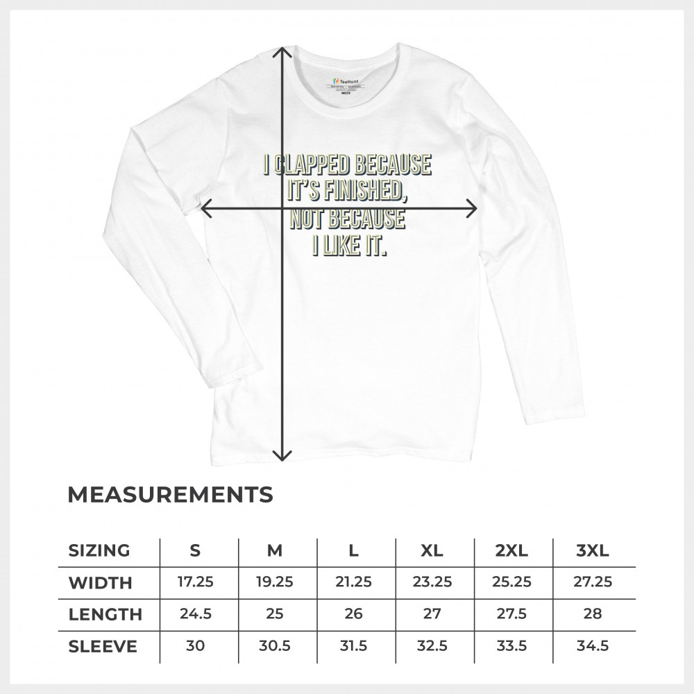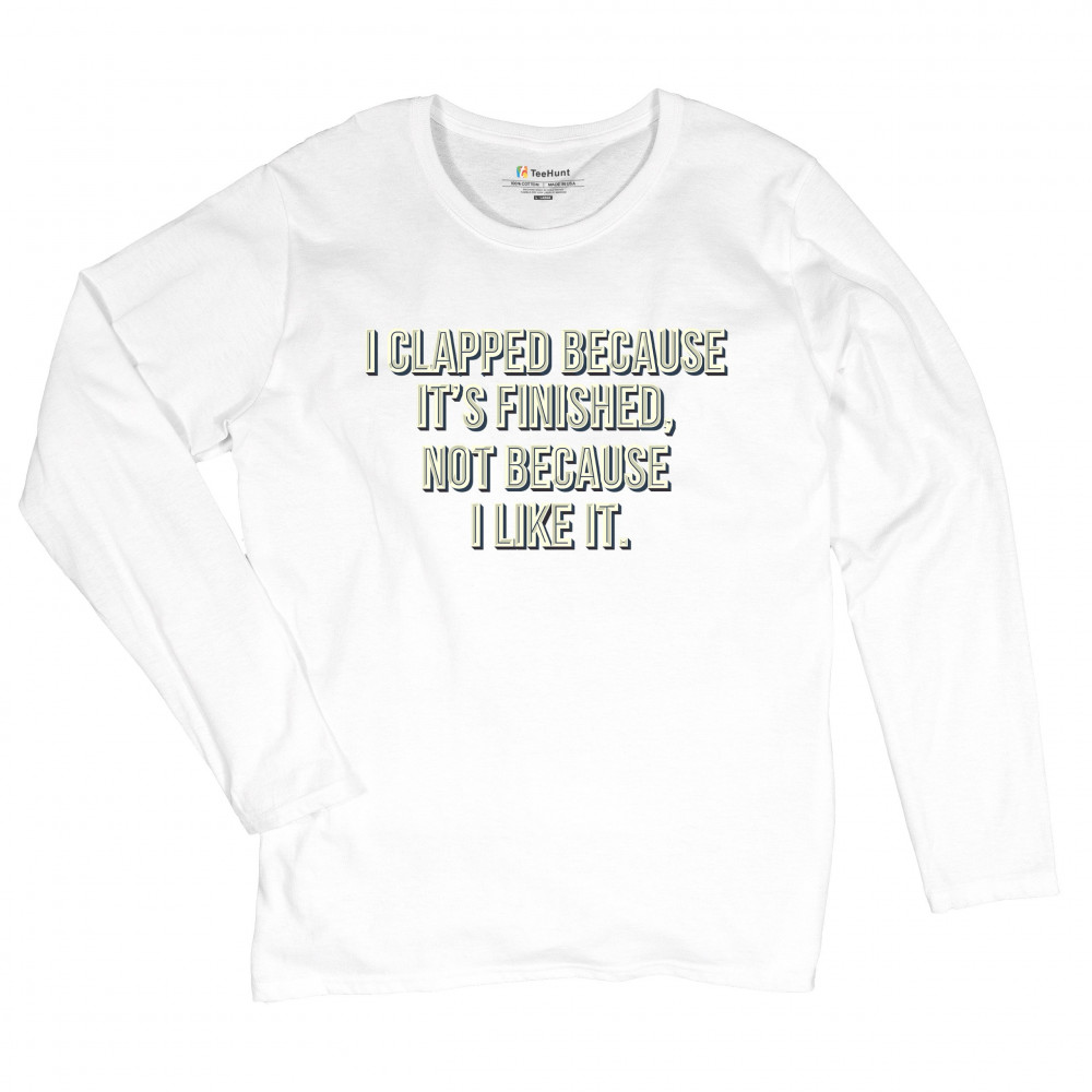 I CLAPPED BECAUSE IT'S FINISHED NOT BECAUSE I LIKE IT i clapped because it's finished sarcastic women's long sleeve t-shirt funny white