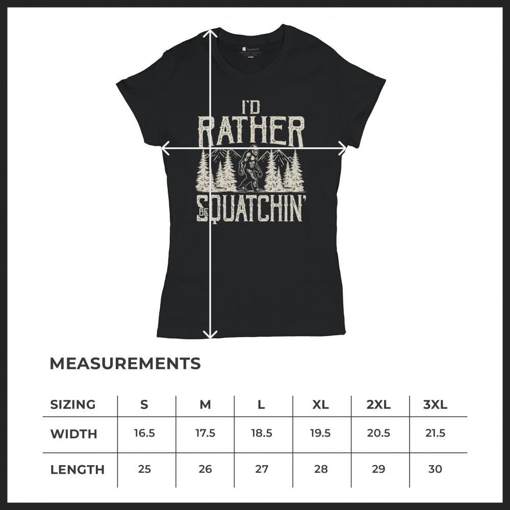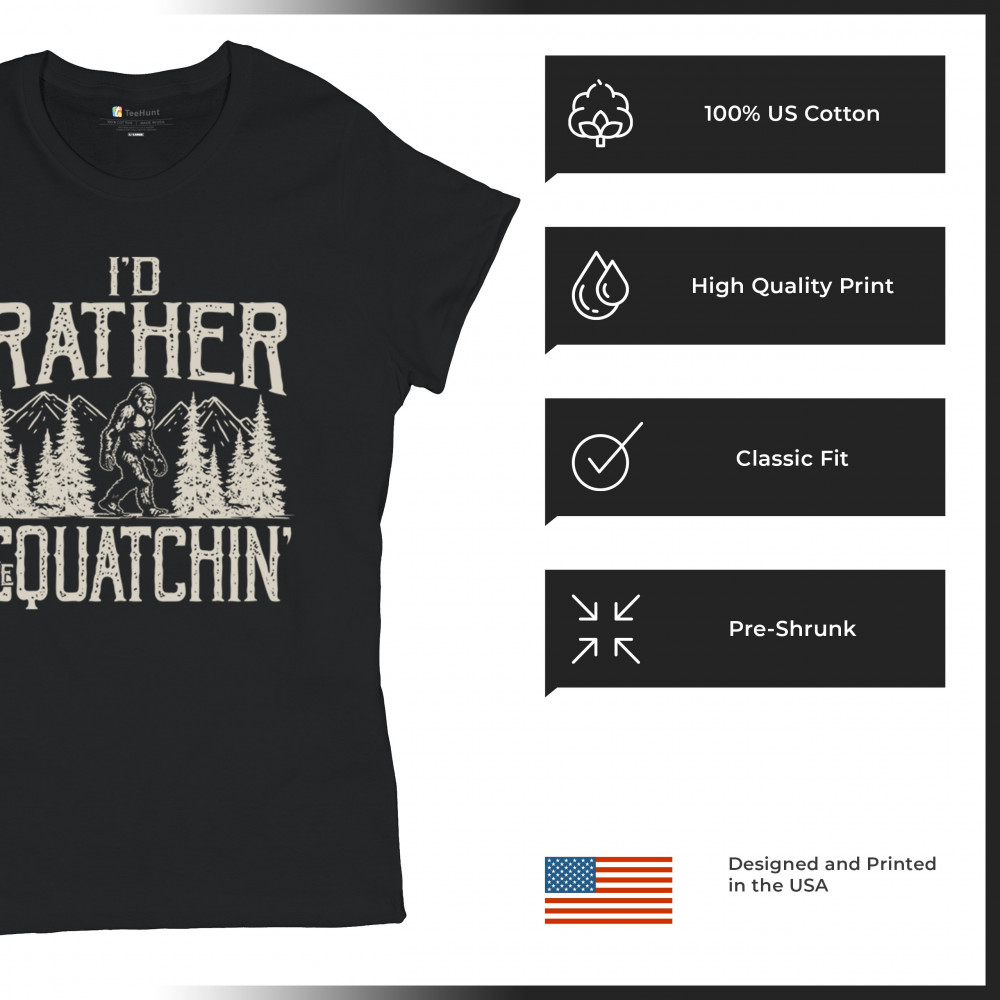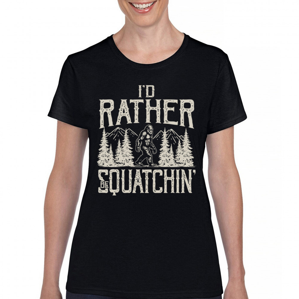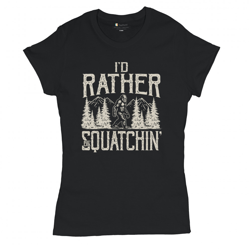 I'D RATHER BE SQUATCHIN t-shirt funny bigfoot sasquatch hiking yeti women's tee black