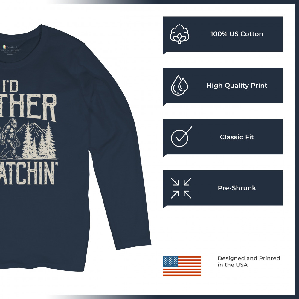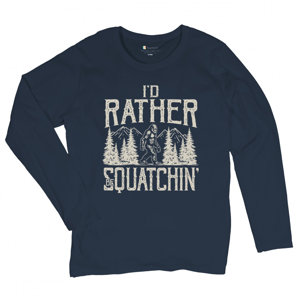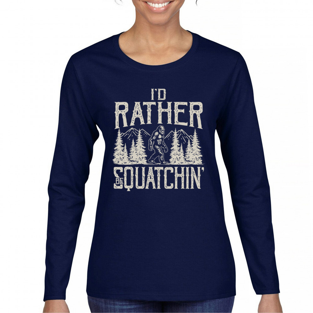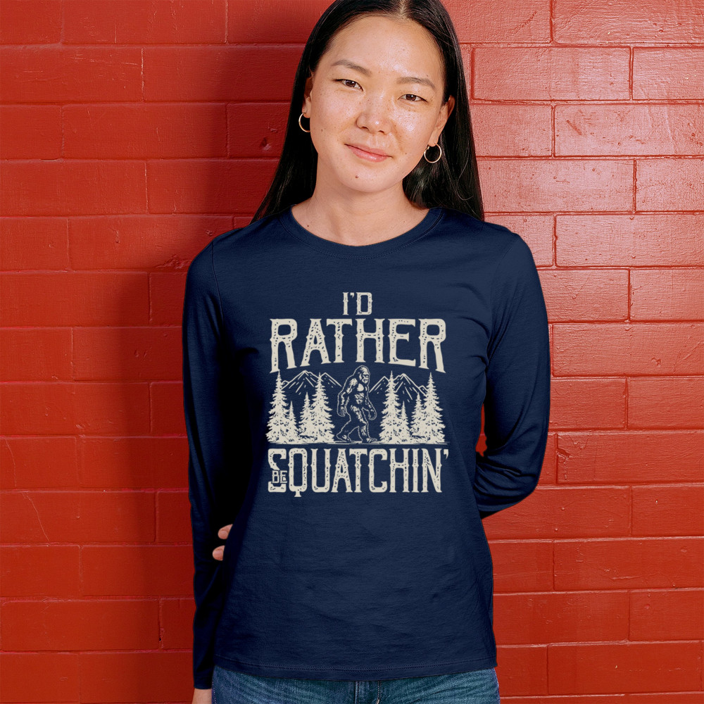"I’d Rather Be Squatchin’" – A bold design for Bigfoot fans and outdoor adventurers, featuring Sasquatch in a wilderness setting. Perfect for hikers and cryptid enthusiasts!