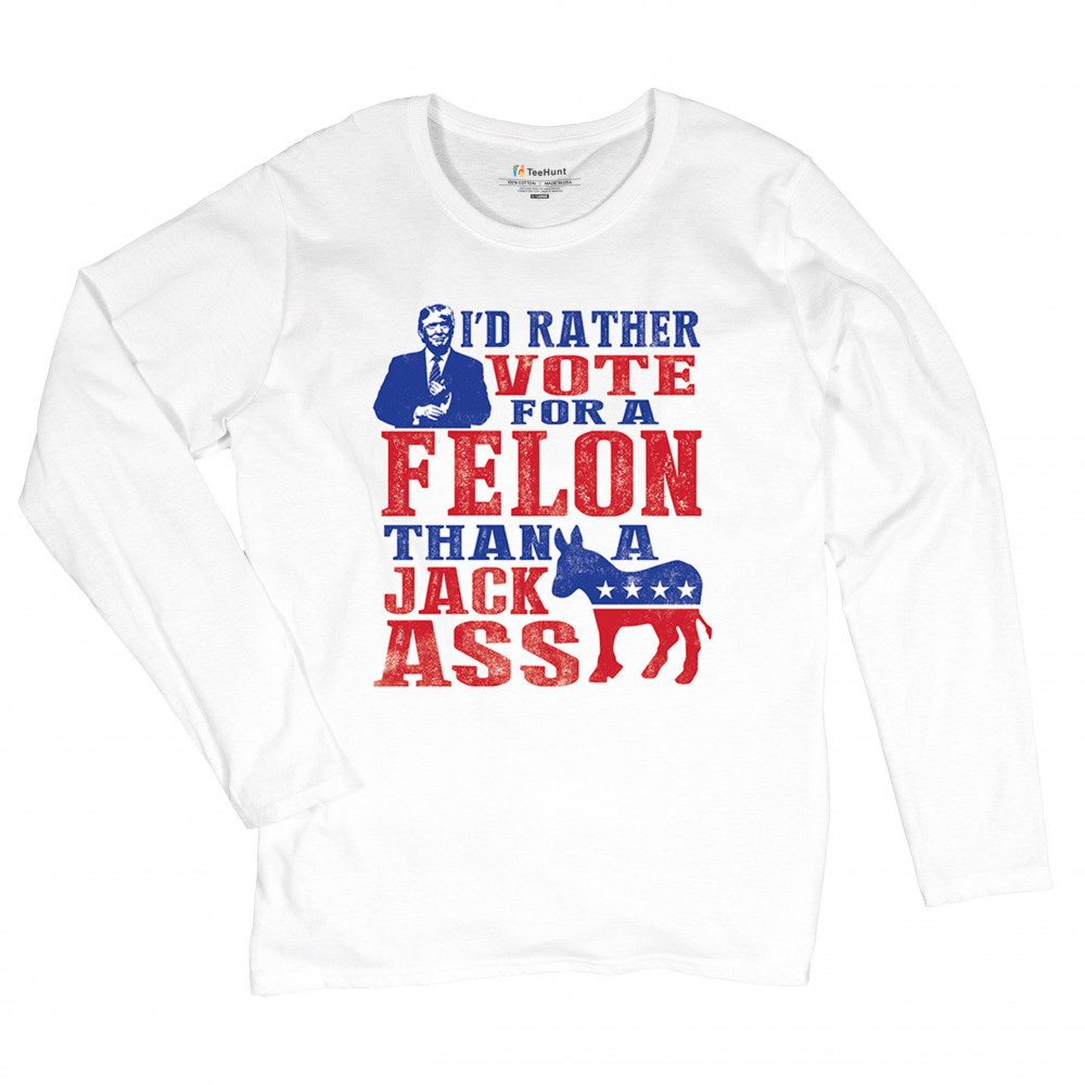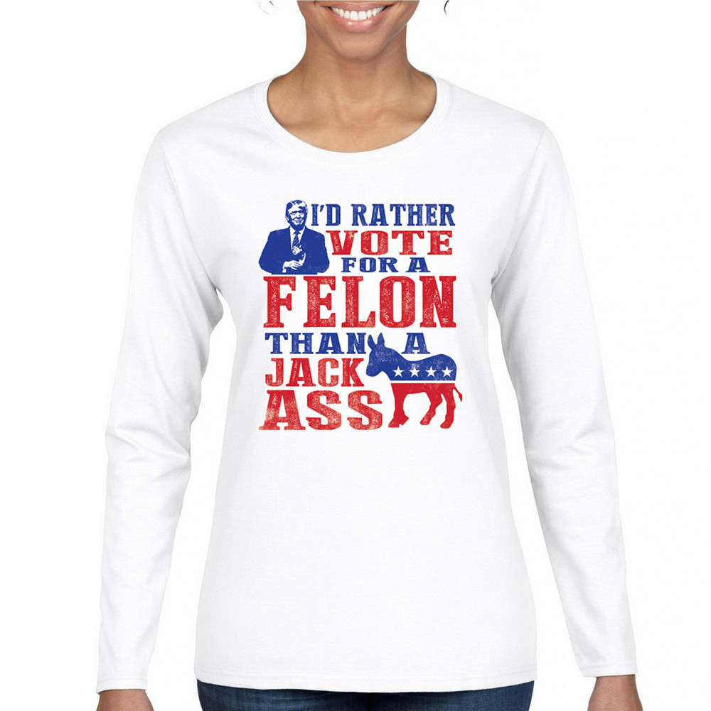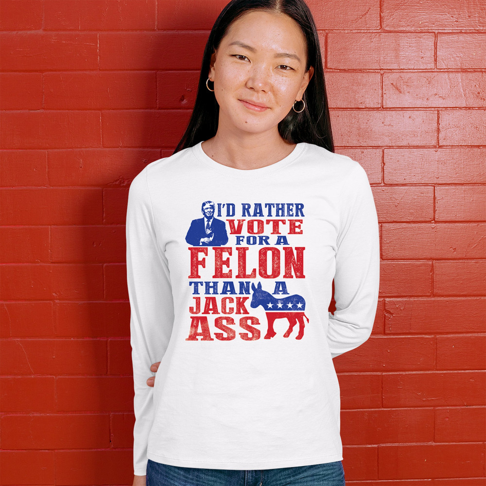 Boldly express your support with the "I'd Rather Vote For A Felon Than A Jackass" design. Perfect for rallies, it showcases loyalty to Trump and JD Vance.