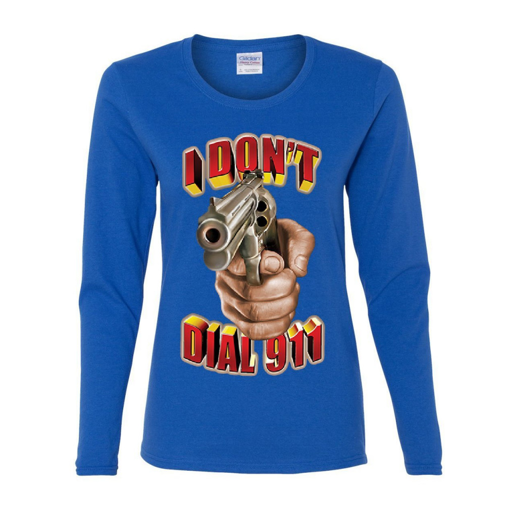 I DON'T DIAL 911 women's long sleeve tee defend 2nd amendment pro guns revolver royal blue