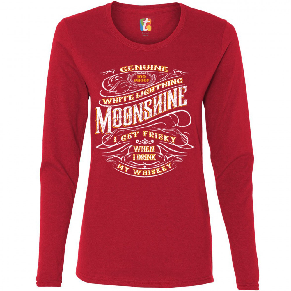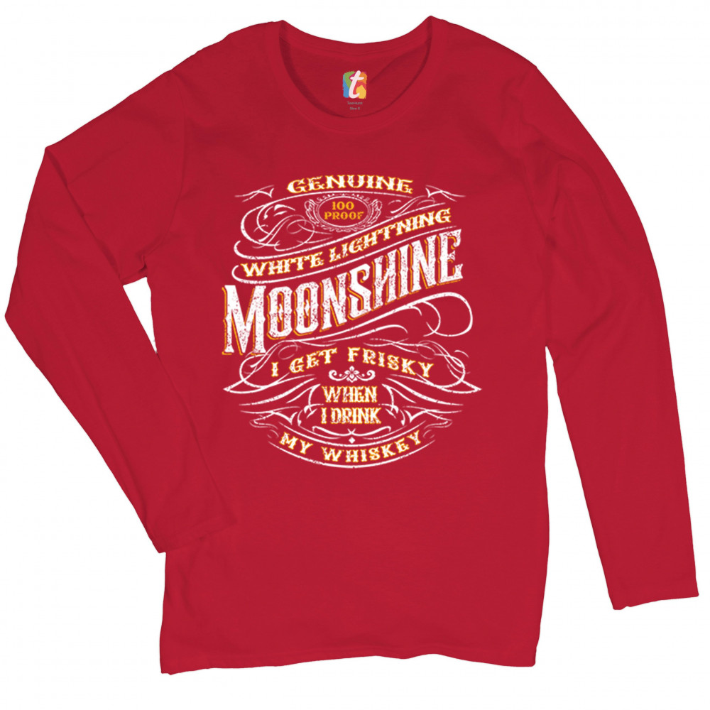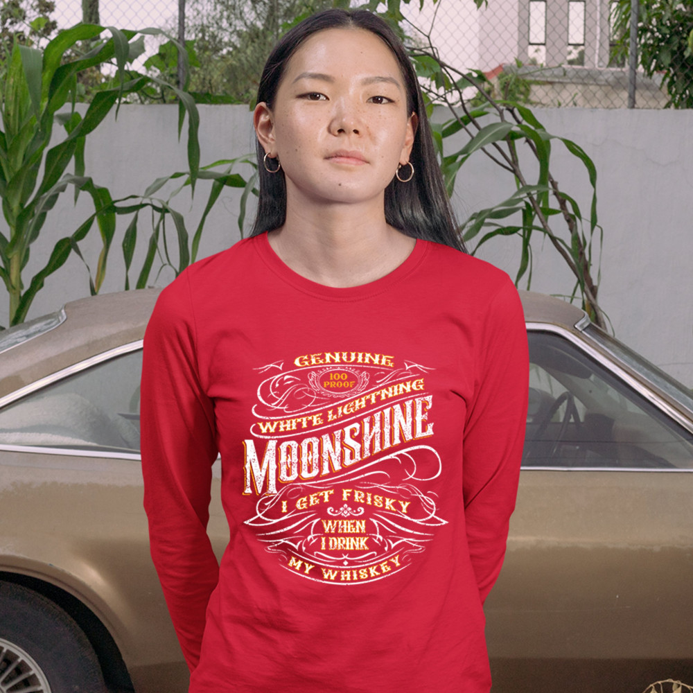 I GET FRISKEY WHEN I DRINK MY WHISKEY women's long sleeve t-shirt moonshine red
