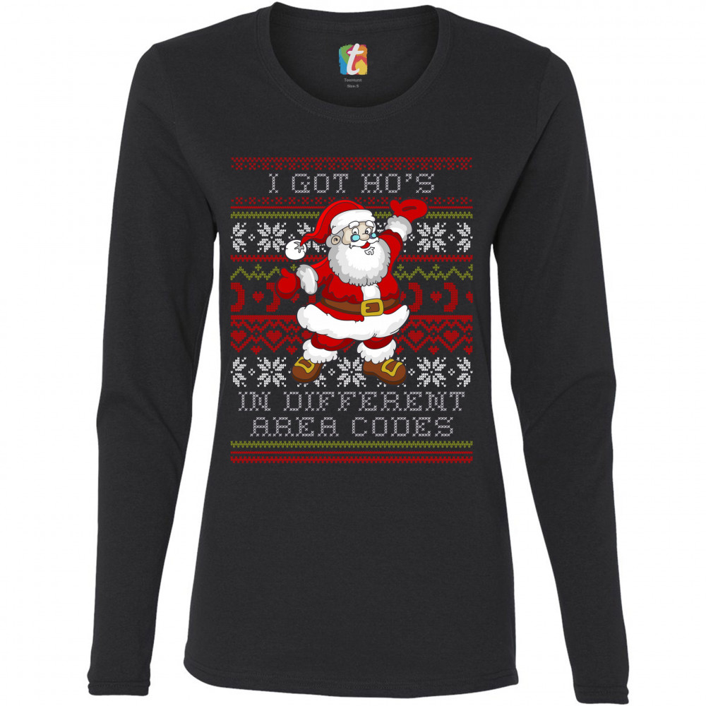 I GOT HO'S IN DIFFERENT AREA CODES women's long sleeve t-shirt ugly sweater black