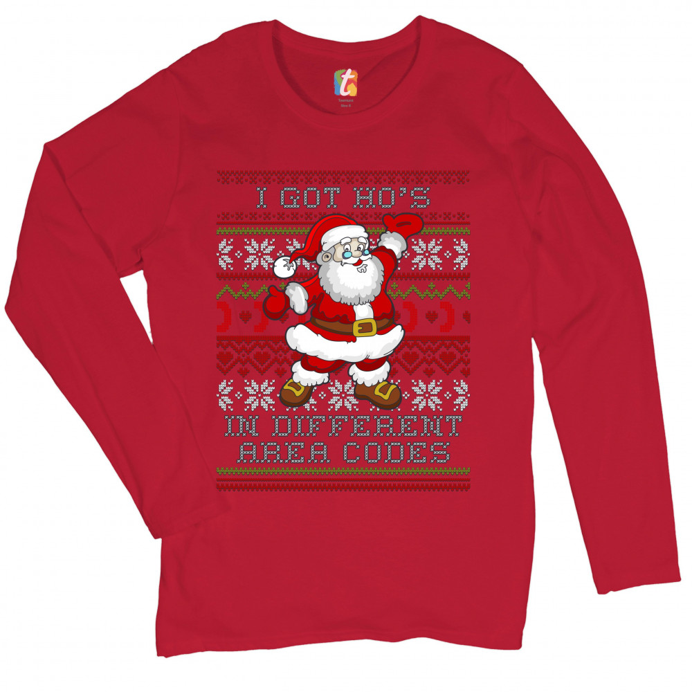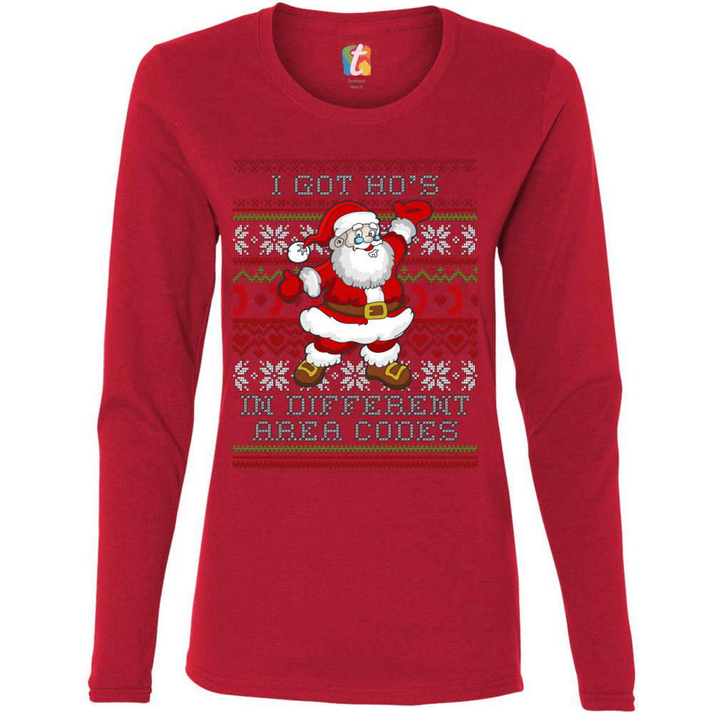 I GOT HO'S IN DIFFERENT AREA CODES women's long sleeve t-shirt ugly sweater red