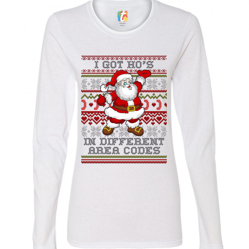 I GOT HO'S IN DIFFERENT AREA CODES women's long sleeve t-shirt ugly sweater white