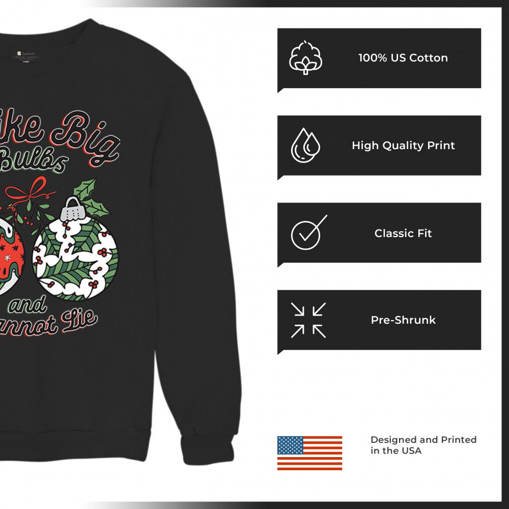 Light up the holiday season with our "I Like Big Bulbs" design, a playful and festive addition to any celebration. This unique design is perfect for cozy family gatherings, office parties, or Secret Santa exchanges, adding a humorous twist to your holiday wardrobe. Ideal for matching group outfits or gift exchanges, it captures the Christmas spirit in a fun and memorable way. From jolly gatherings to festive gift ideas, this design brings cheer to every holiday event.