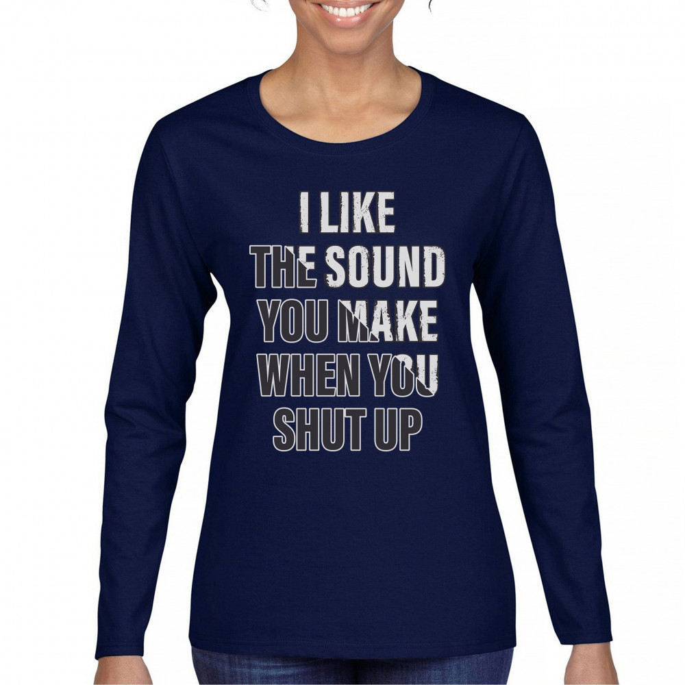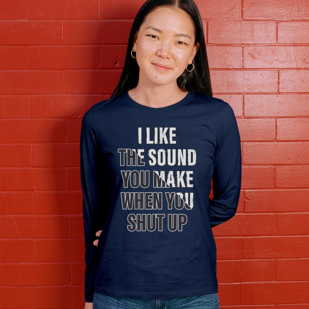 I LIKE THE SOUND YOU MAKE WHEN YOU SHUT UP women's long sleeve t-shirt funny navy blue