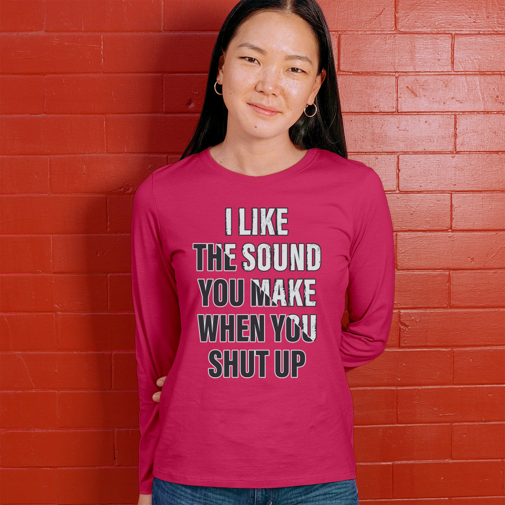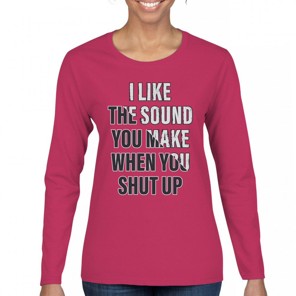 I LIKE THE SOUND YOU MAKE WHEN YOU SHUT UP women's long sleeve t-shirt funny pink