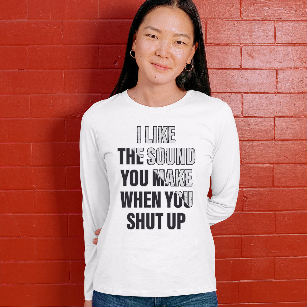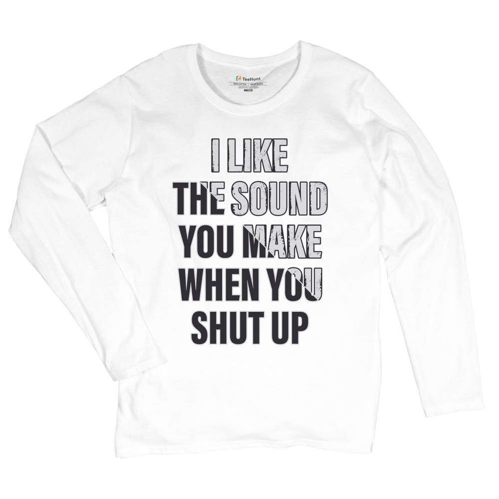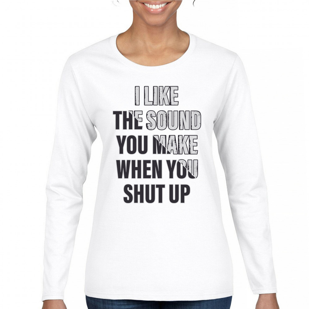I LIKE THE SOUND YOU MAKE WHEN YOU SHUT UP women's long sleeve t-shirt funny white