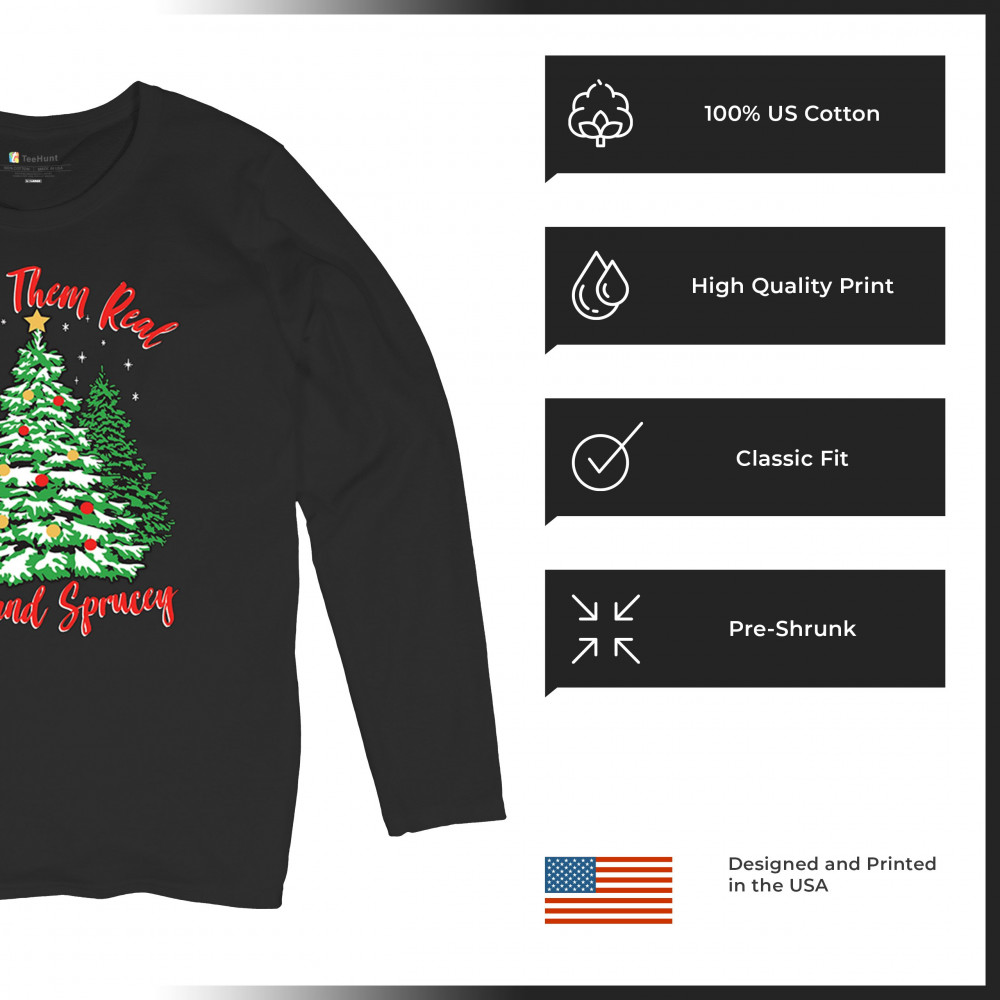 Enjoy the holiday season with our "I Like Them Real, Thick, and Sprucey" Christmas tree design, perfect for festive gatherings and holiday gifting!